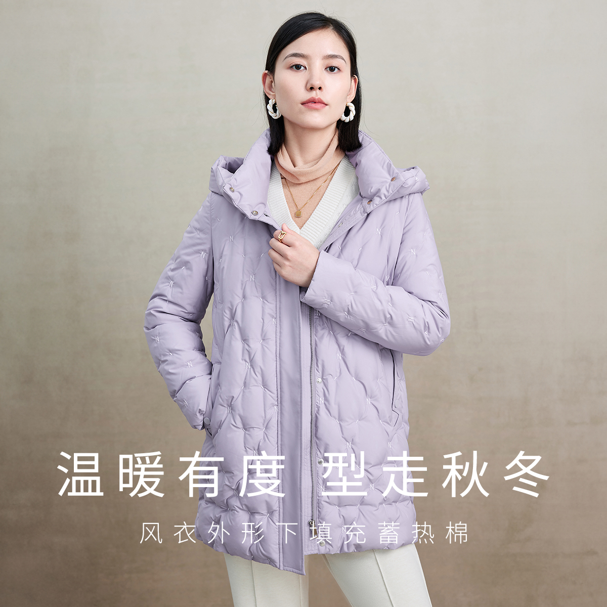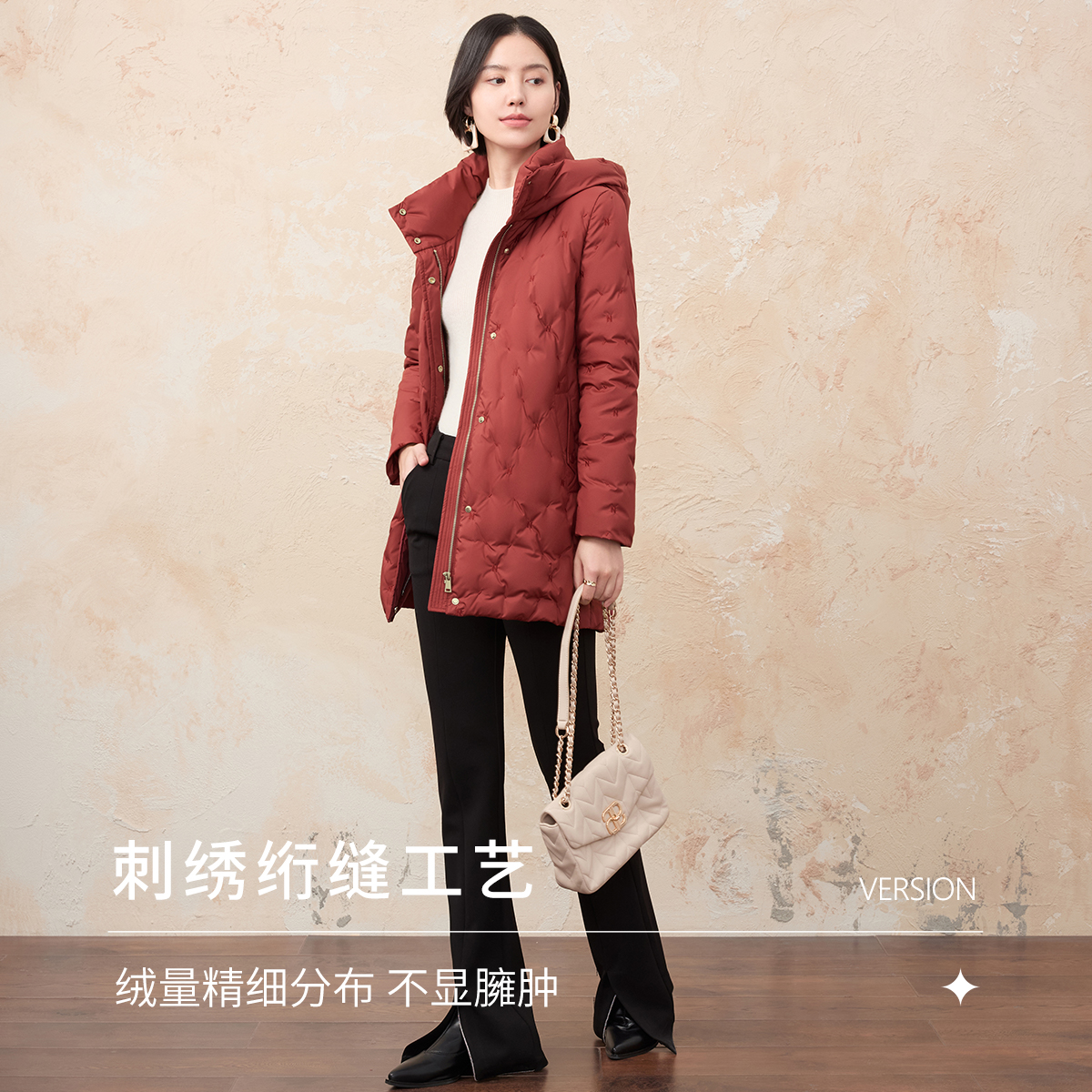 加厚保暖鸭绒外套C 休闲连帽中长款 鸭鸭羽绒服女2025秋冬韩版 时尚