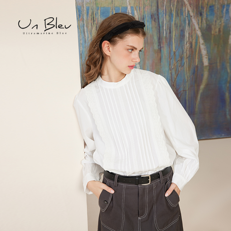复古港风女装 unbleu白衬衫 长袖 新款 蕾丝花边上衣 女设计感小众秋季