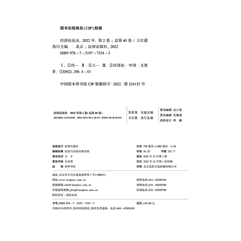 2022年第2卷 经济法论丛 总第40卷 漆多俊 社9787519773243 正版 法律出版 2022新书