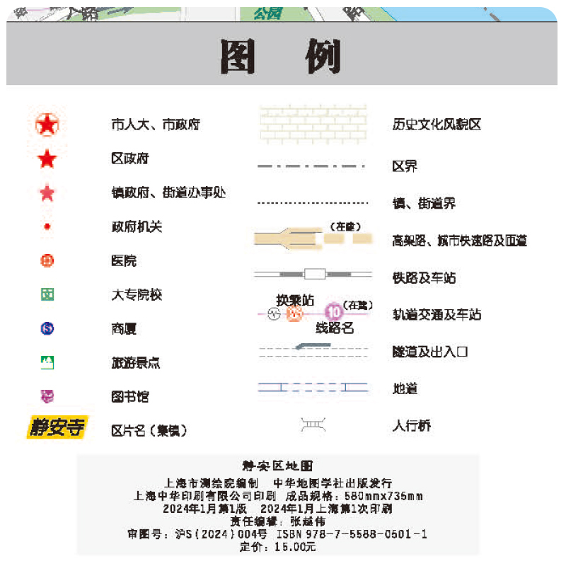 中华地图学社 地铁站景点学校医院商厦分布情况 上海市静安区地图新版 上海分区交通旅游便民出行指南