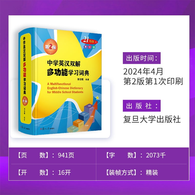 社 复旦大学出版 初中高中通用英语词典高考英语词汇背诵单词学习工具书英汉双解大词典 2024新版 中学英汉双解多功能学习词典第2版