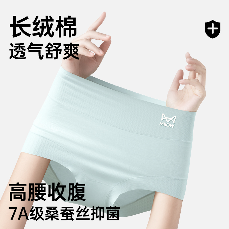 2025新款 薄款 高腰收腹提臀短裤 大码 猫人内裤 无痕平角裤 女纯棉夏季