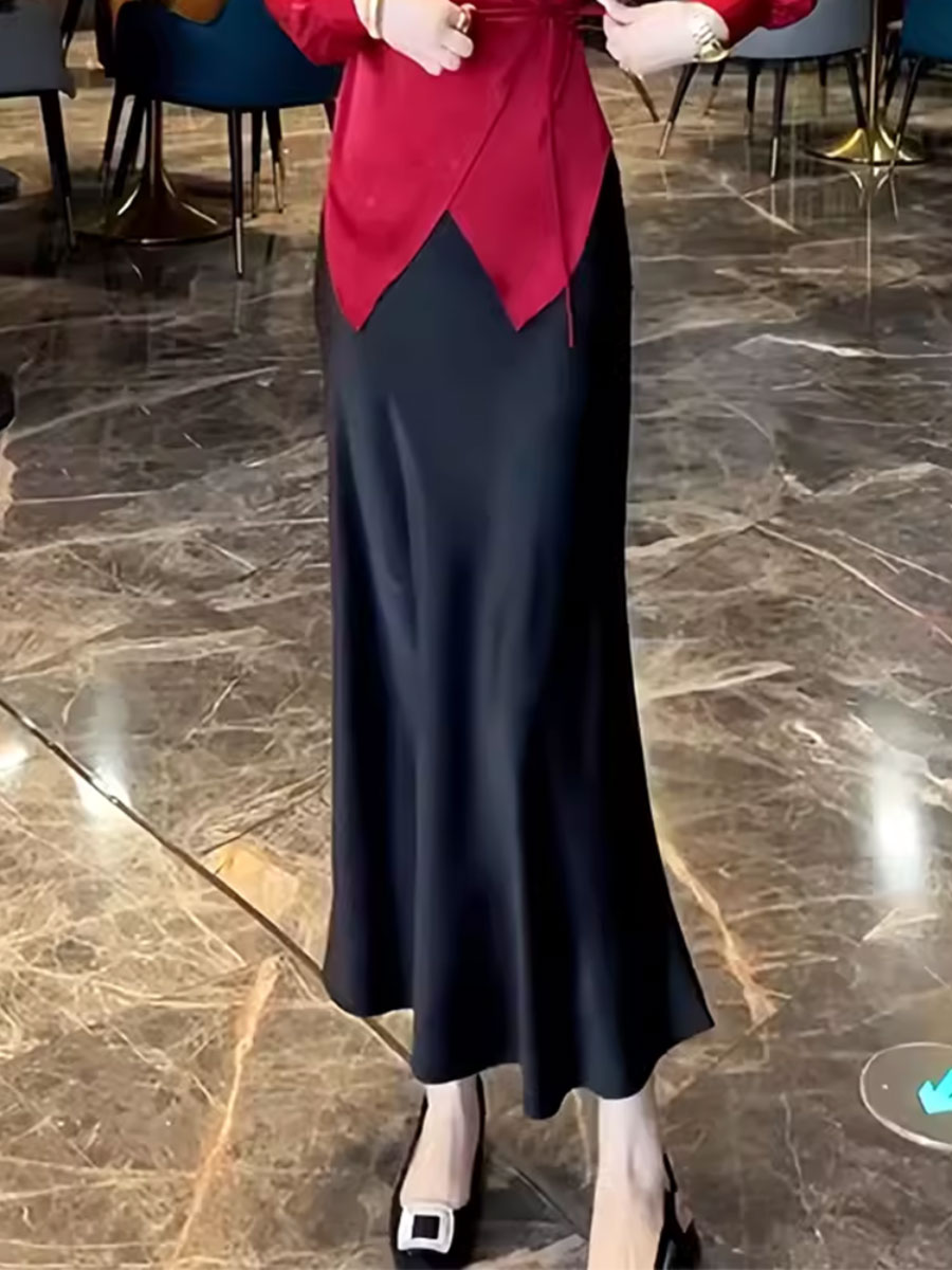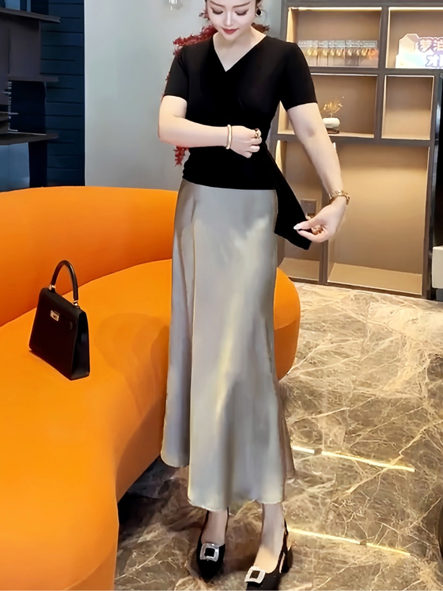 灰色半身裙女2025年秋新款 垂感宽松包臀鱼尾裙 高腰显瘦a字中长款