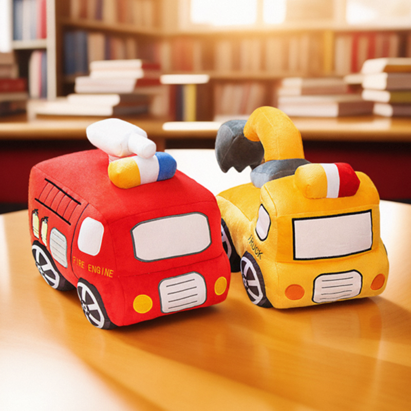 卡通消防车挖掘机毛绒玩具男孩睡觉抱枕玩偶工程汽车公仔生日礼物