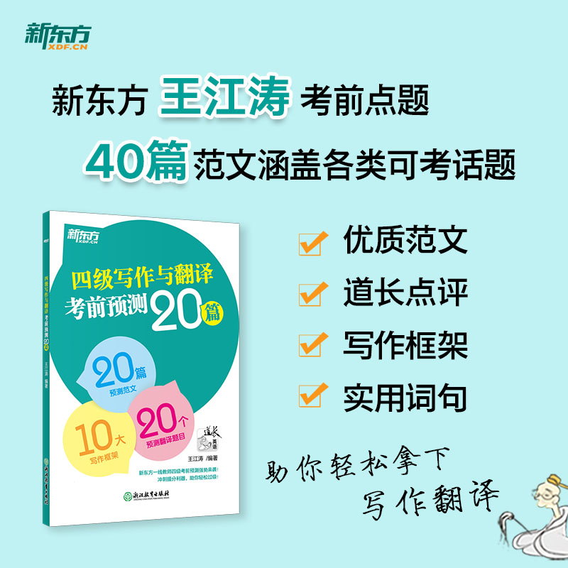 2025年6月大学英语四级写作与翻译考前预测20篇 新东方 王江涛 四级写作CET4 6级模拟题预测20篇 新版 英语四级押题冲刺试题 现货