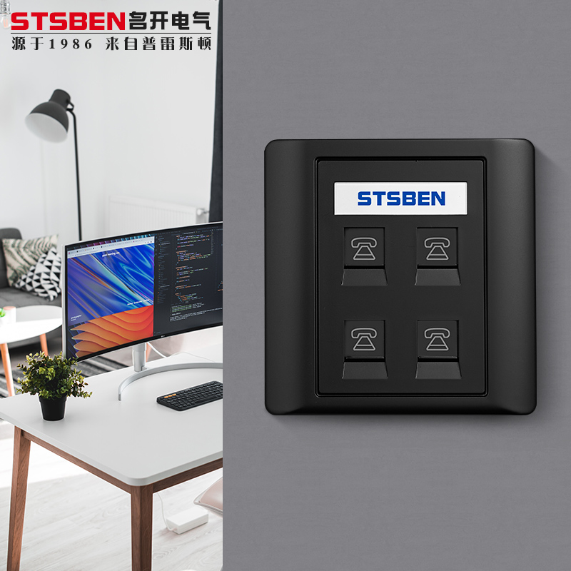 三位电话插座面板 两位双孔电话插座 86型墙壁暗装 4口电话面板