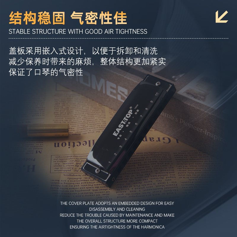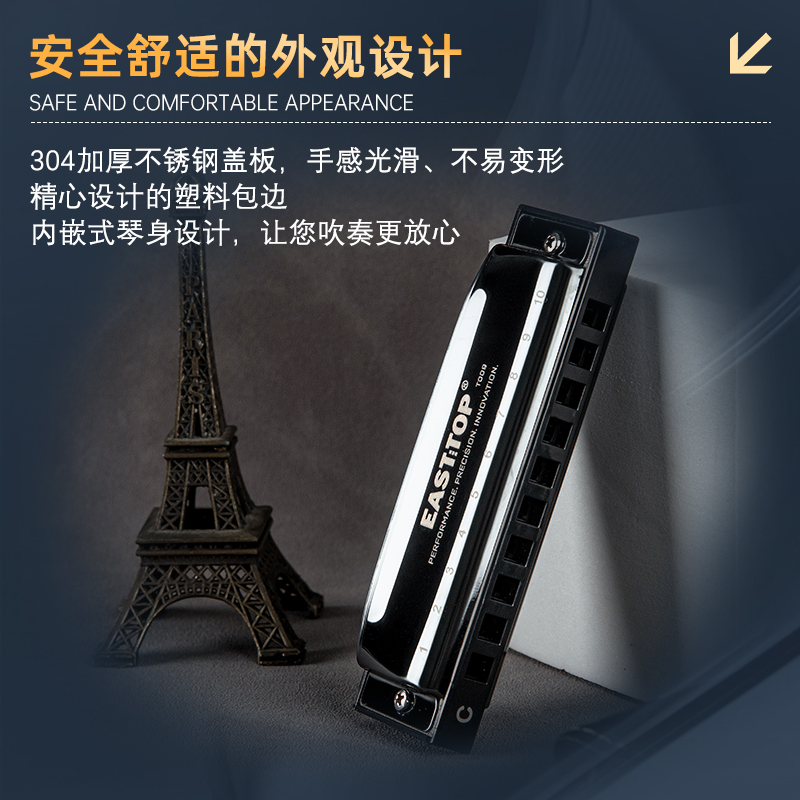EASTTOP东方鼎正品 十孔布鲁斯初学蓝调口琴入门学生专业演奏T009