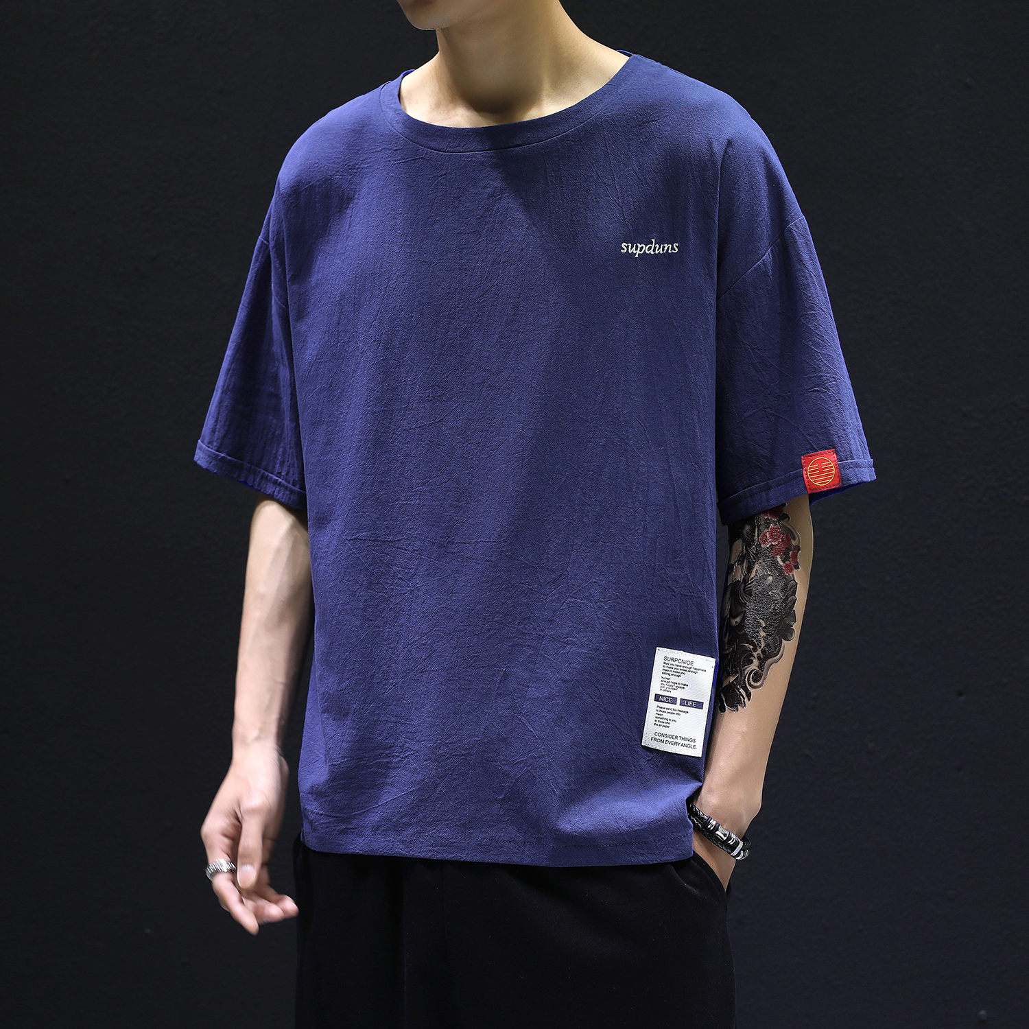 胖子棉麻半袖 2024夏季 t恤男宽松大码 潮牌亚麻短袖 潮流中国风 新款