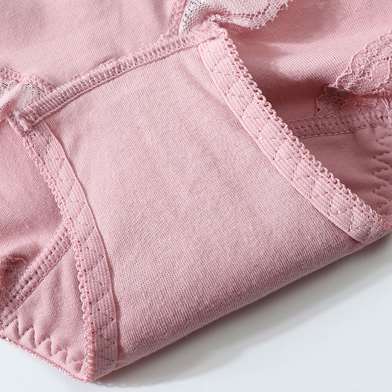 无痕少女三角裤 内裤 女中腰包臀柔软纯棉透气底裆腹部蕾丝女士薄款