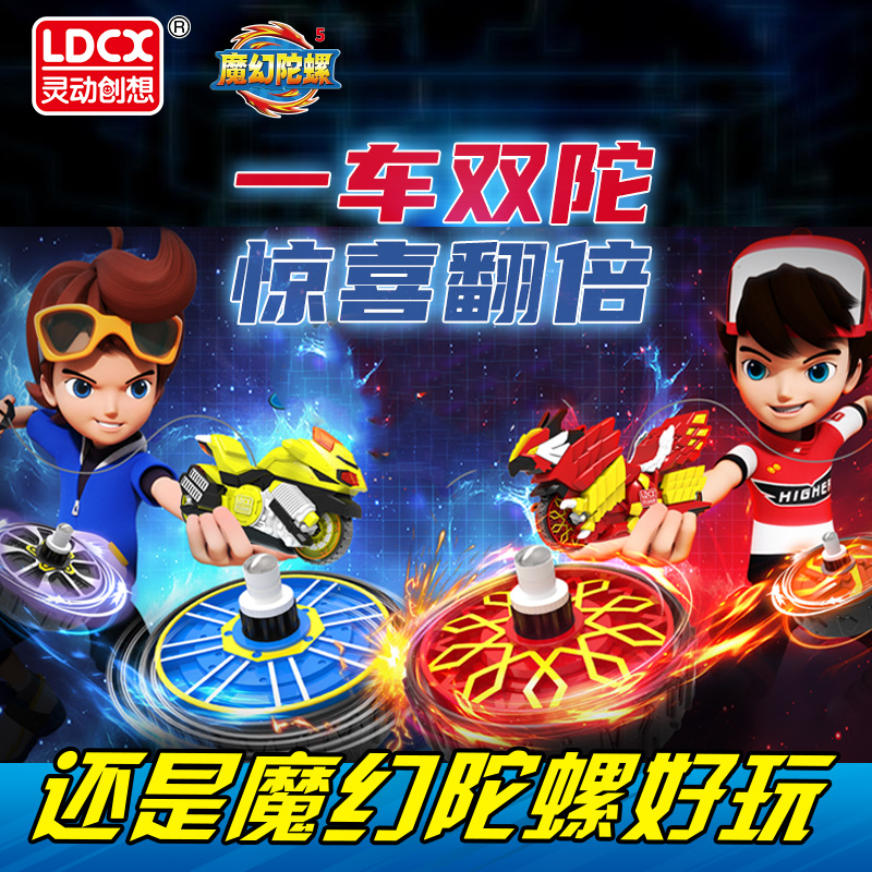 灵动创想魔幻陀螺5代新款 男孩旋风轮梦幻4儿童摩托车战车4玩具五