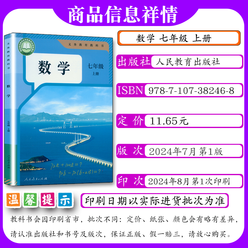 2025秋版 七年级上册数学书初一1学生用书七年级数学上册初中教材数学7年级数学上册人教社教材教科书 初中课本数学7年级上册人教版