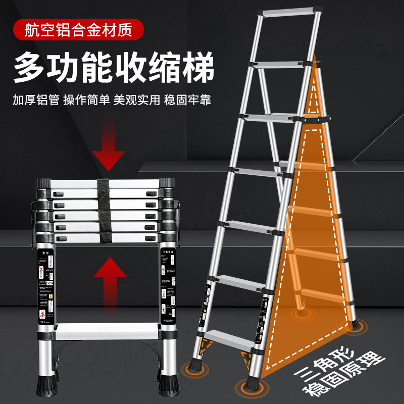 加厚铝合金多功能家用折叠伸缩梯人字梯子竹节梯升降梯工程梯铝梯