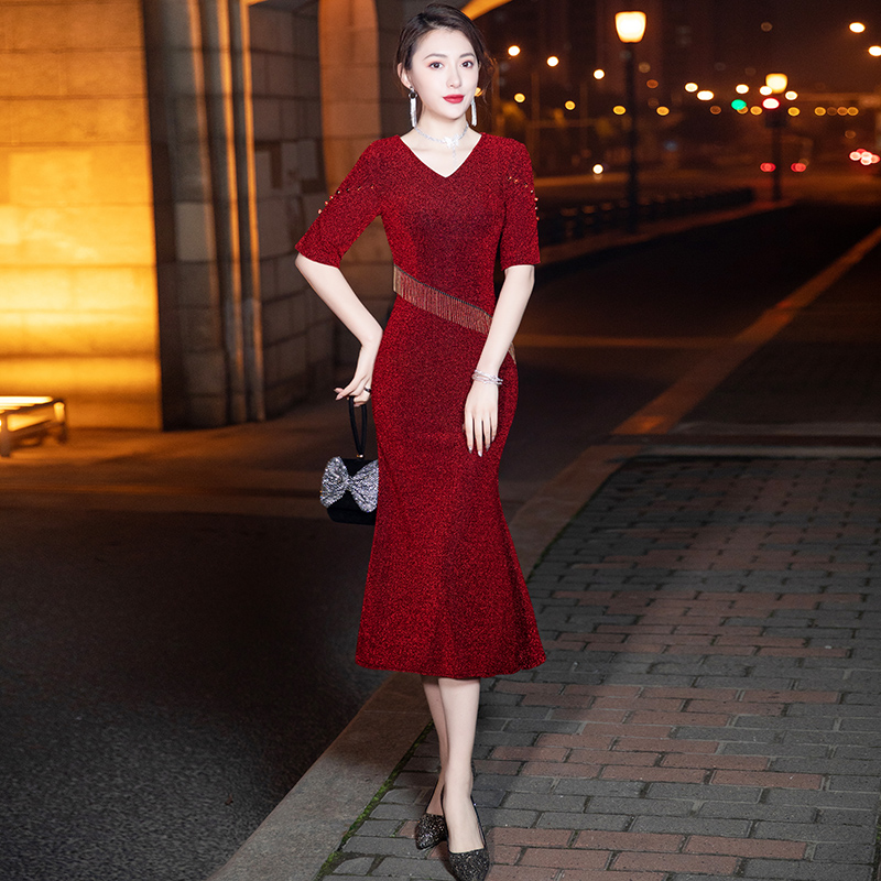 熙蜜乐ximile晚礼服主持人晚宴修身 裙 显瘦成人礼生日战袍鱼尾晚装
