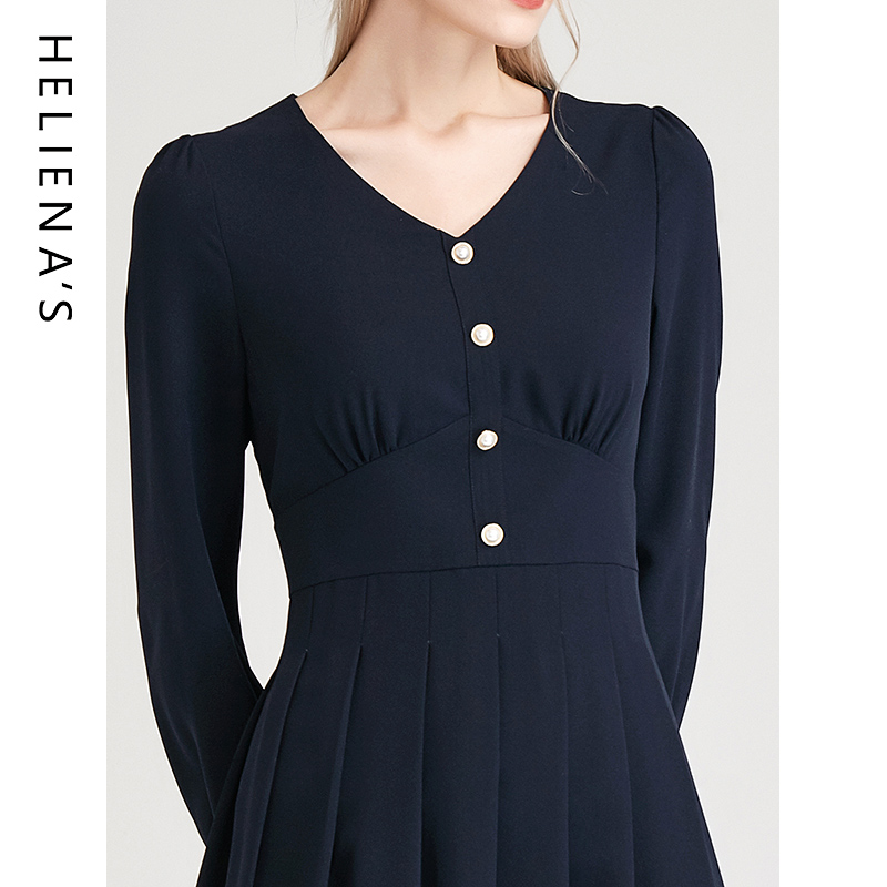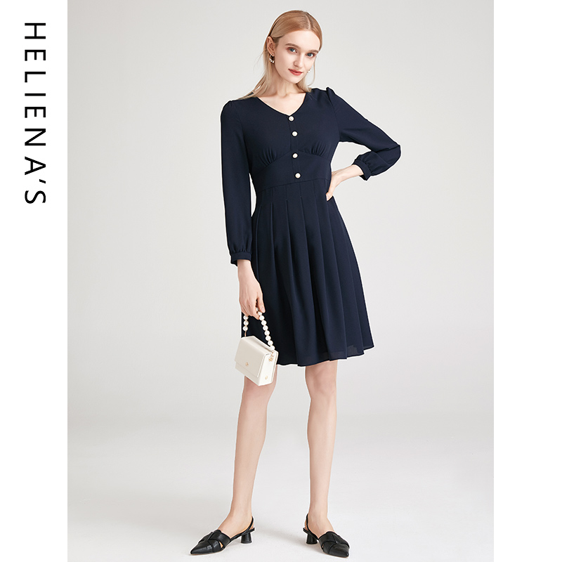 气质V领长袖 时尚 a字裙子轻熟风收腰显瘦连衣裙 新款 海兰丝春季