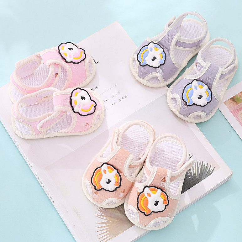 夏宝宝护脚凉鞋 防滑婴儿胶底不掉鞋 软底步前鞋 1岁2 牛筋底学步鞋