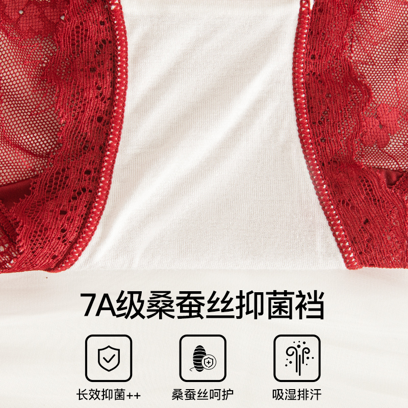 新婚喜庆抑菌裆少女三角裤 七色纺女士内裤 红色本命年性感蕾丝美式