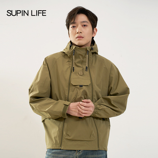 森马户外三防外套男2025秋款 连帽上衣百搭徒步露营夹克男女同款