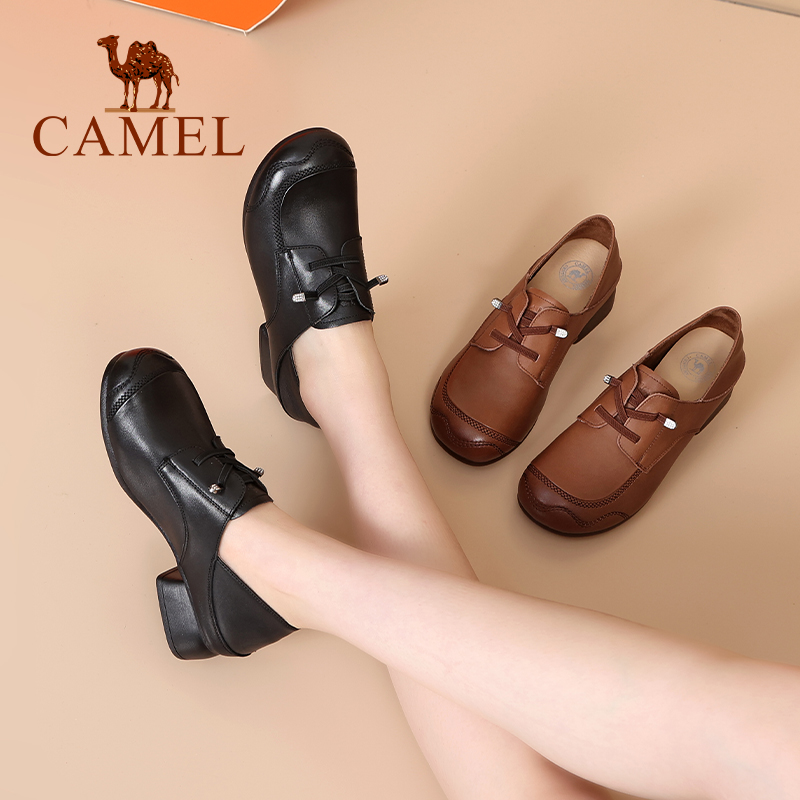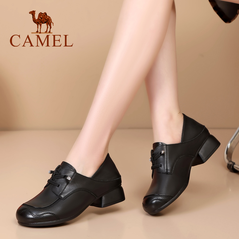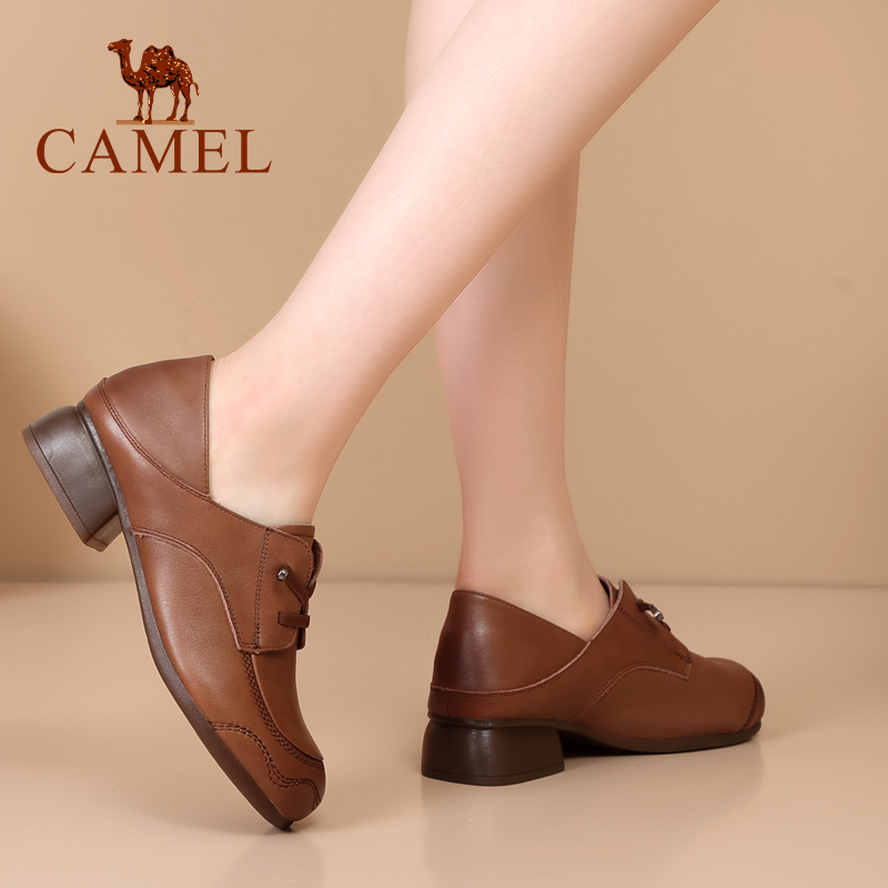 新款 2025秋季 真皮复古乐福鞋 女免系带方跟时尚 Camel 单鞋 骆驼女鞋