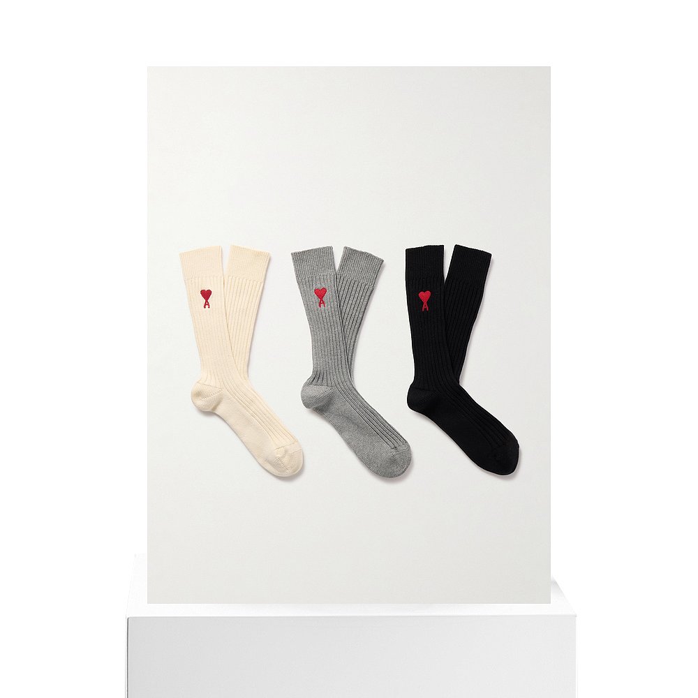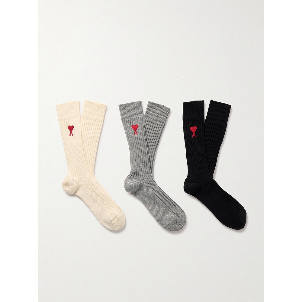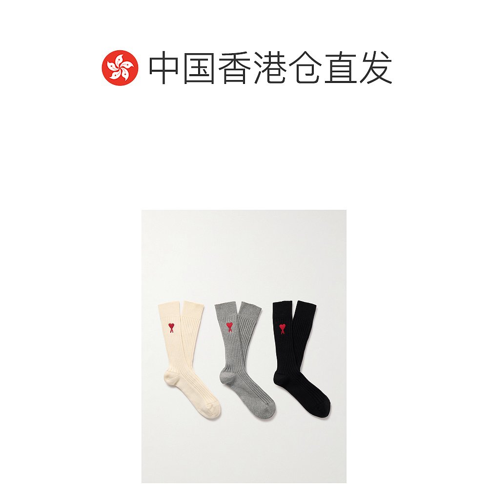 香港直邮Ami Logo刺绣罗纹混纺棉袜子 Paris 3对装 男士 1h可退
