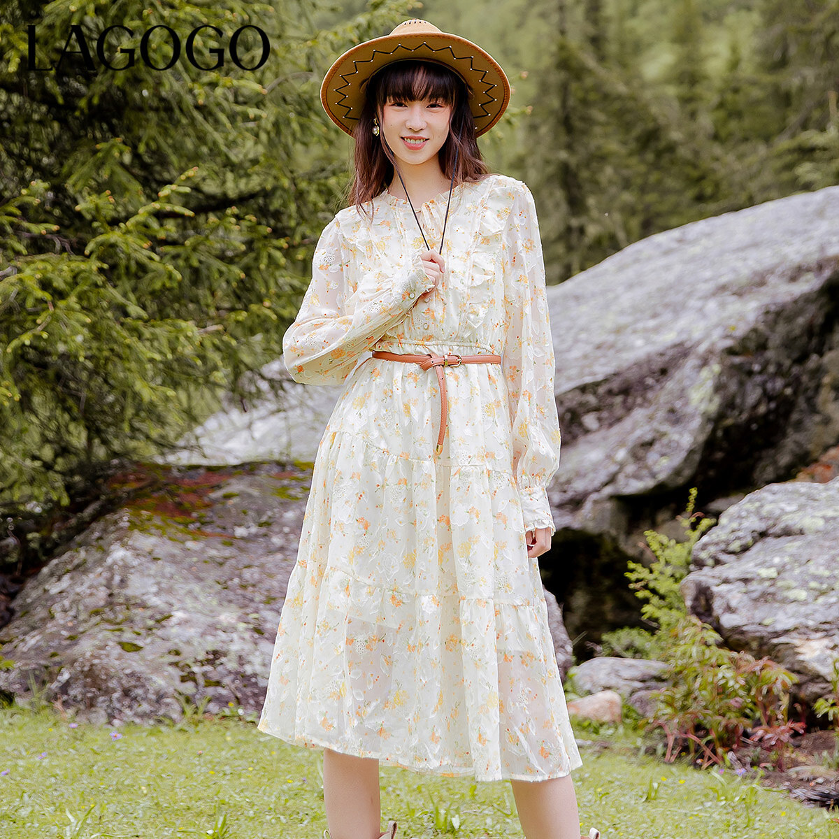 华丽复古宫廷风长款 LULUALWAYS 新款 秋季 连衣裙蛋糕裙 商场同款