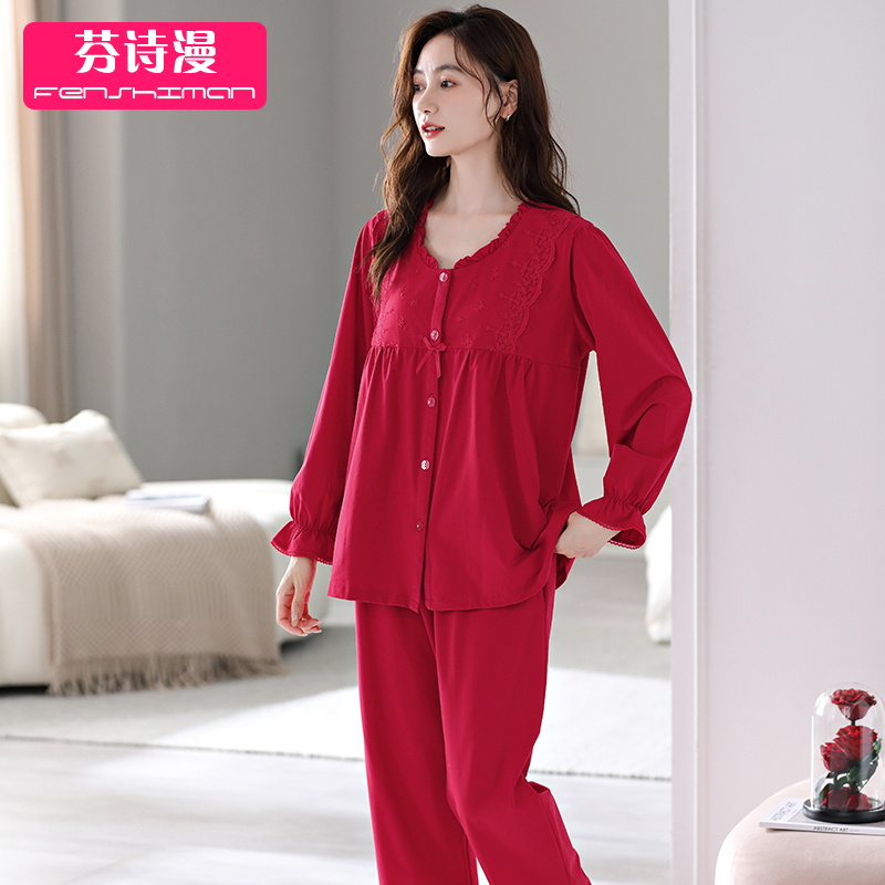家居服套装 都市丽人纯棉长袖 防凸点甜美2025新款 2025新款 睡衣女款