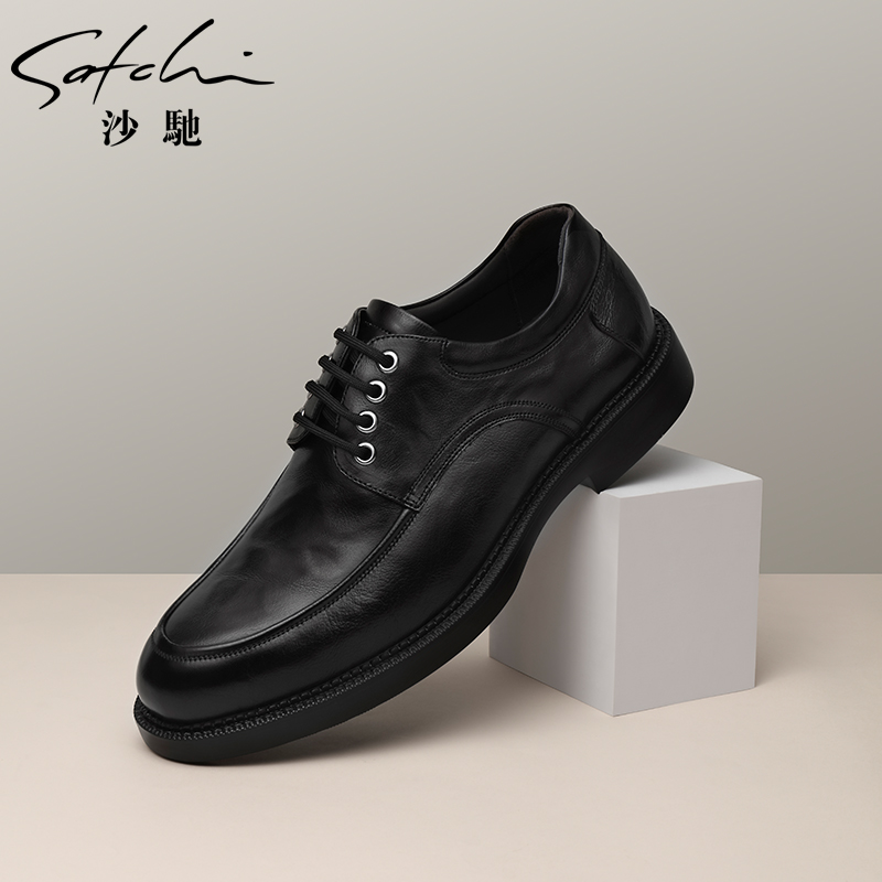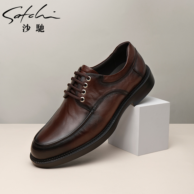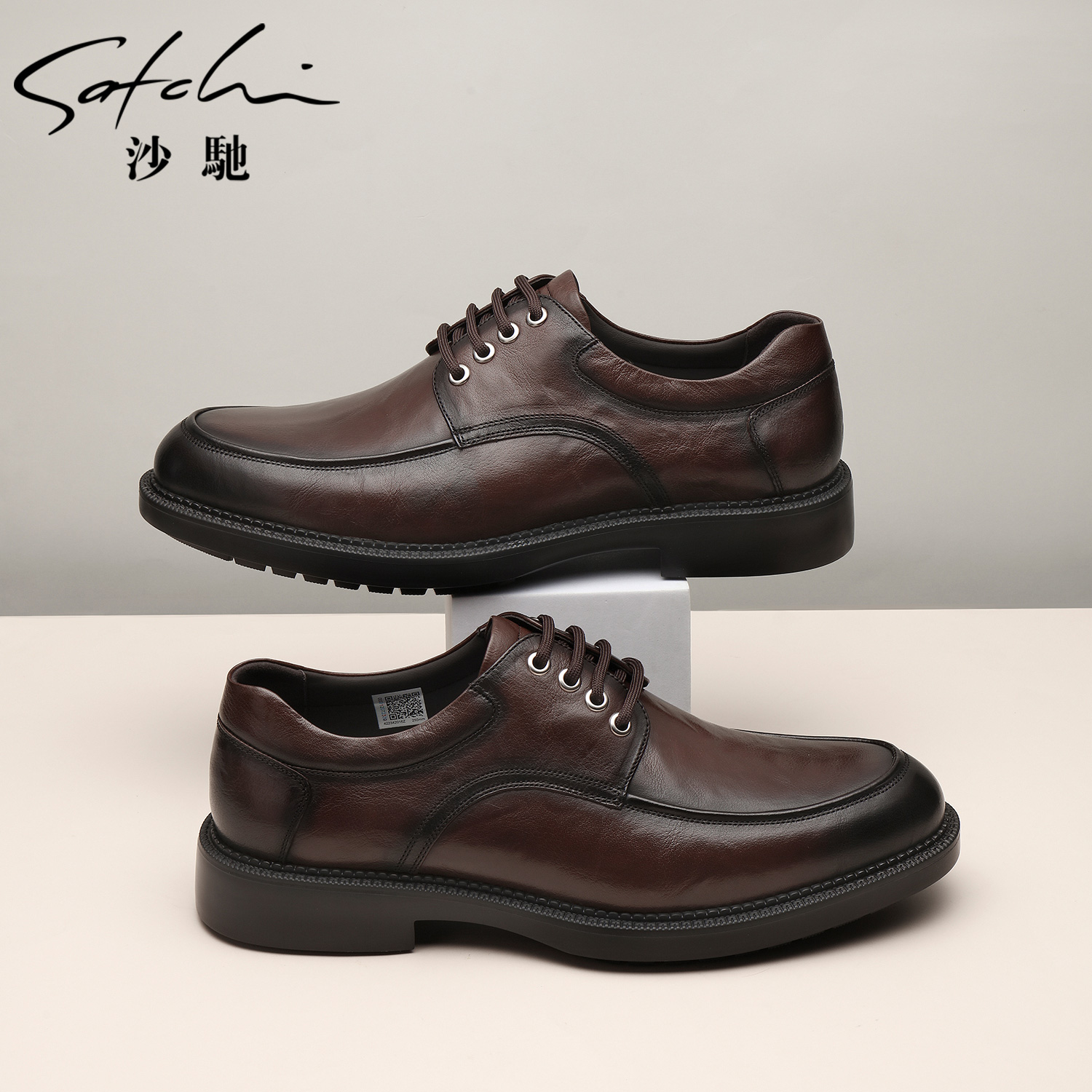 舒适真皮增高软底德比鞋 沙驰男鞋 皮鞋 咖色商务正装 2025年春秋新款