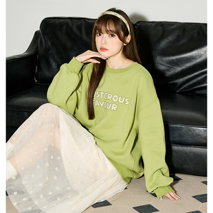 唐狮2025春秋冬款 女卫衣简约字母白色套头宽松圆领加绒上衣女装