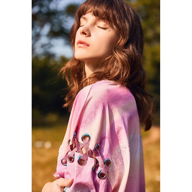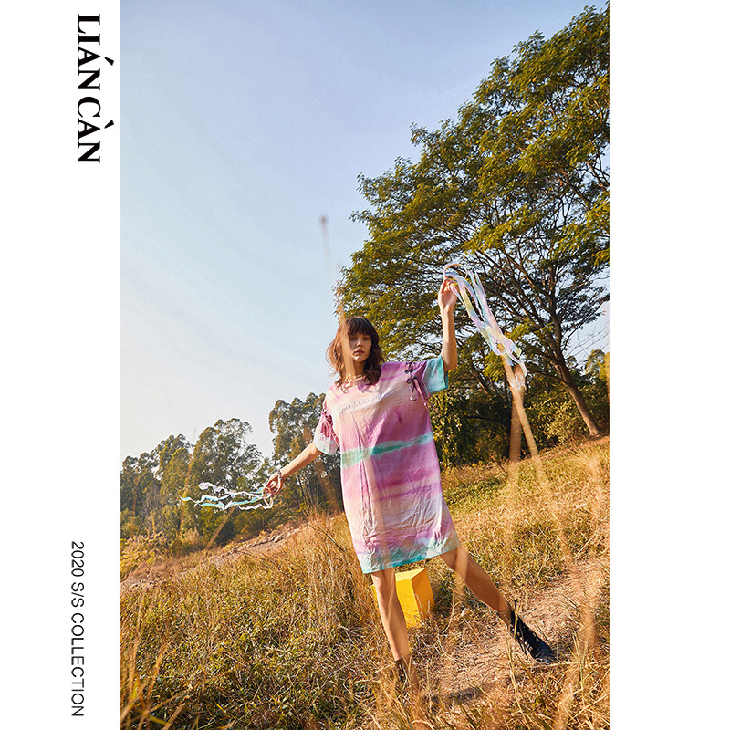 莲灿裂帛春季 浪漫气质宽松连衣裙 新小众设计感彩色针织圆领短袖