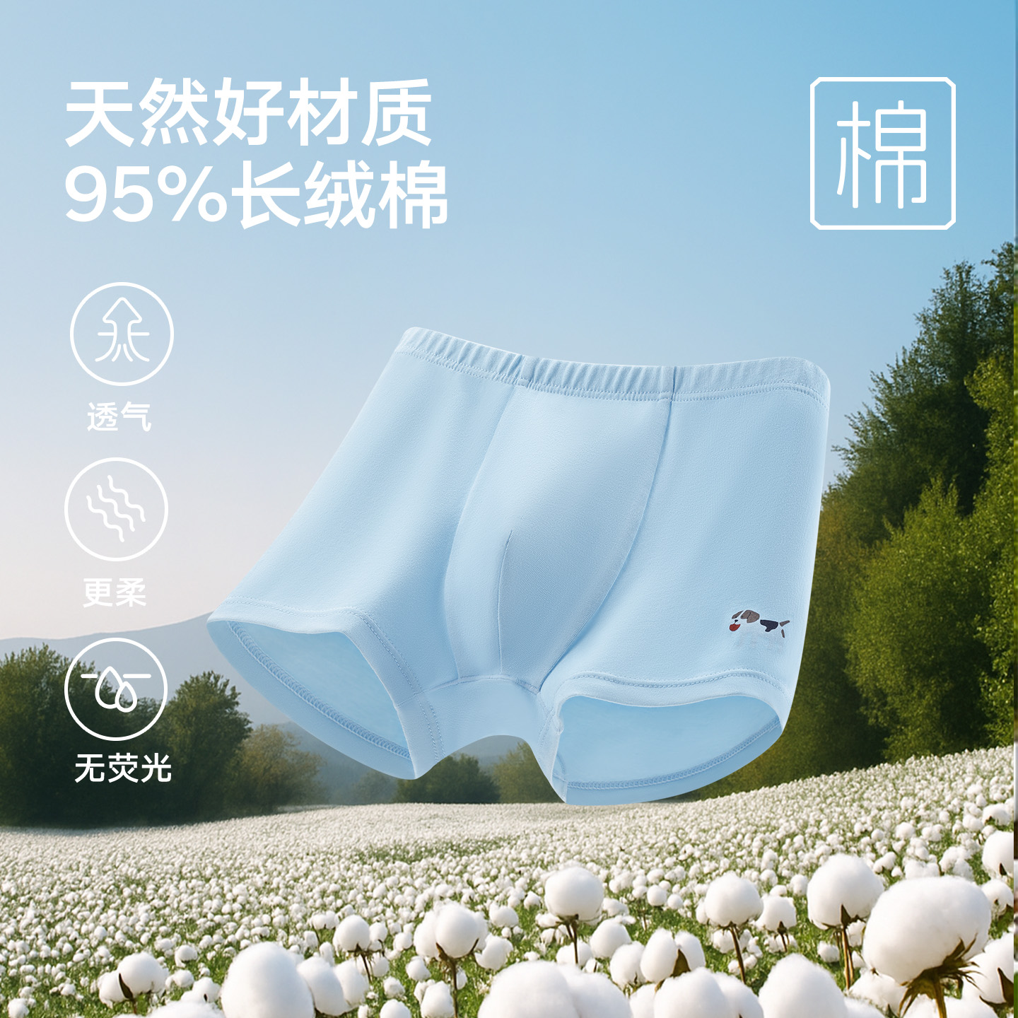 松山棉店儿童内裤 弹力不夹屁屁 7A抑菌长绒棉发育期男童女童平角裤