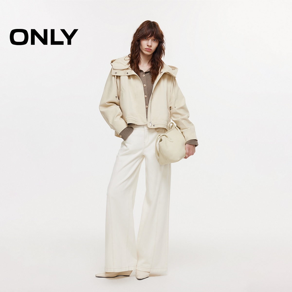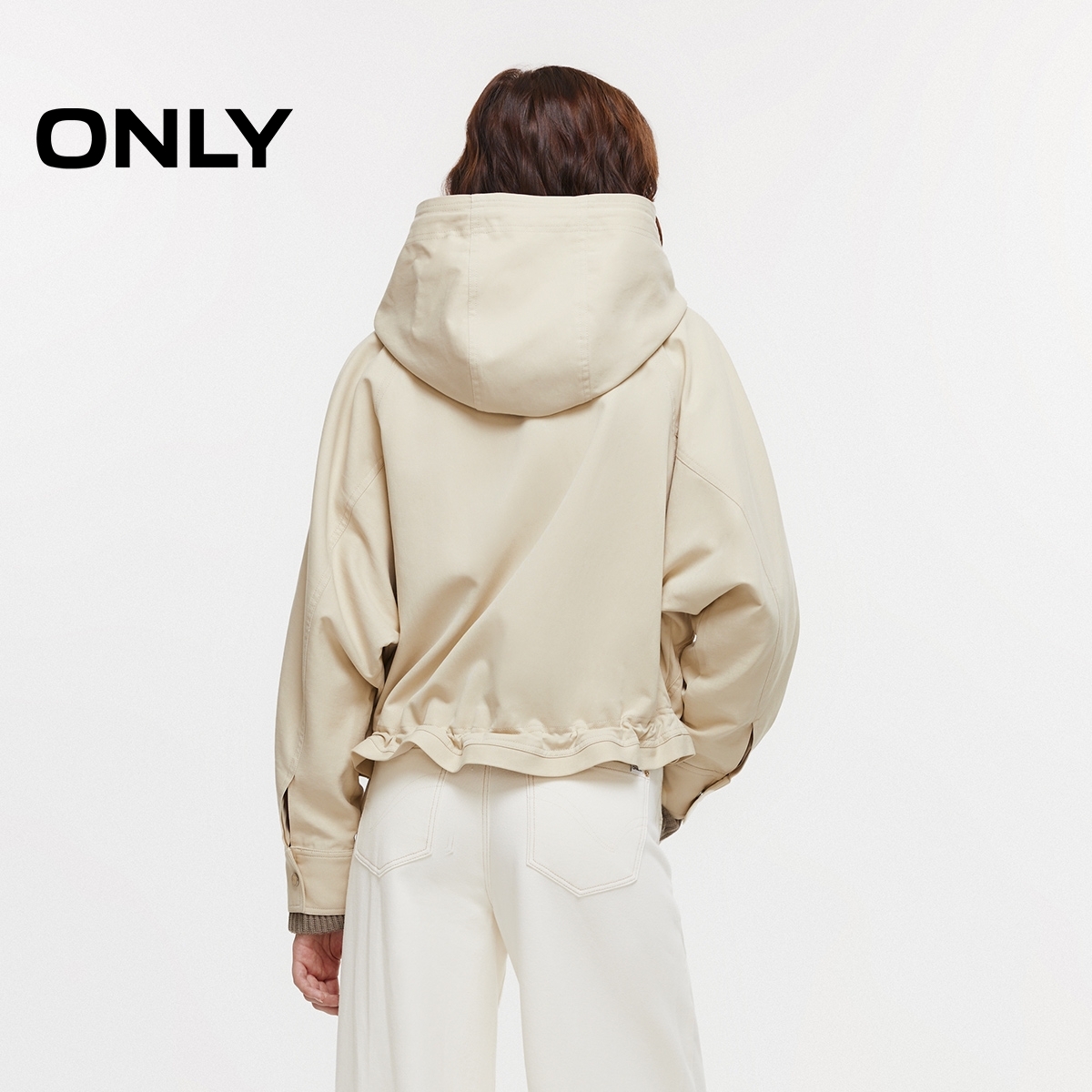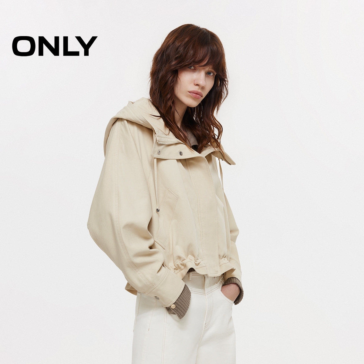 ONLY2025冬季 利落松弛立领连帽宽松插肩可调节抽绳下摆外套女 新款