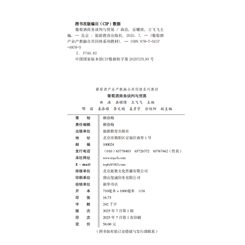 旅游教育出版 葡萄酒商务谈判与贸易9787563748785 葡萄酒产业产教融合共同体系列教材 岳耀倩王飞飞主编 社 曲浩