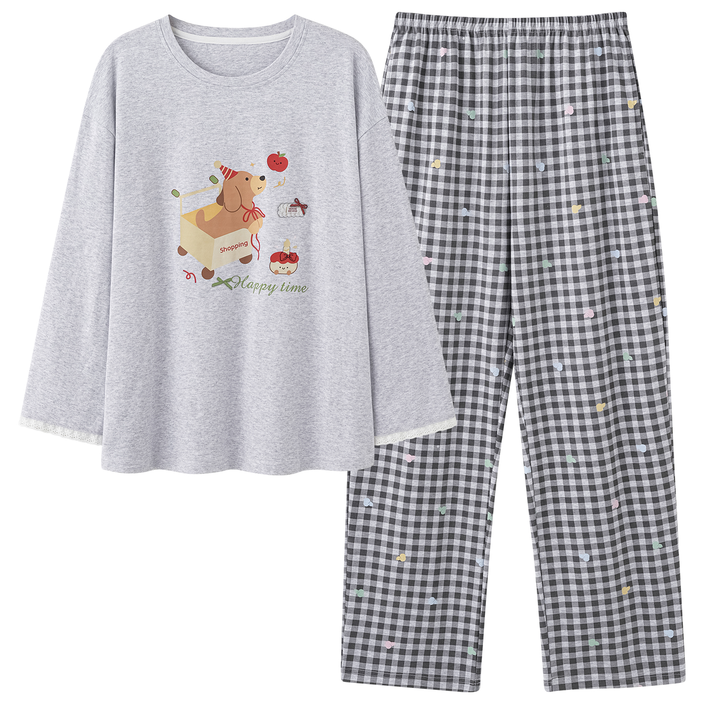2025新款 套装 卡通腊肠狗家居服 长袖 猫人纯棉睡衣女士带胸垫春秋款
