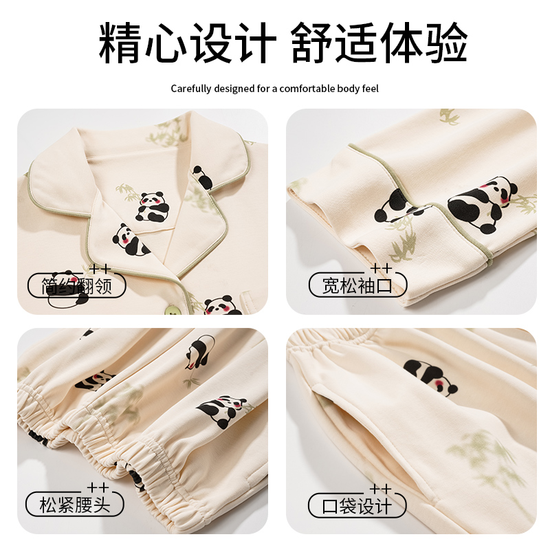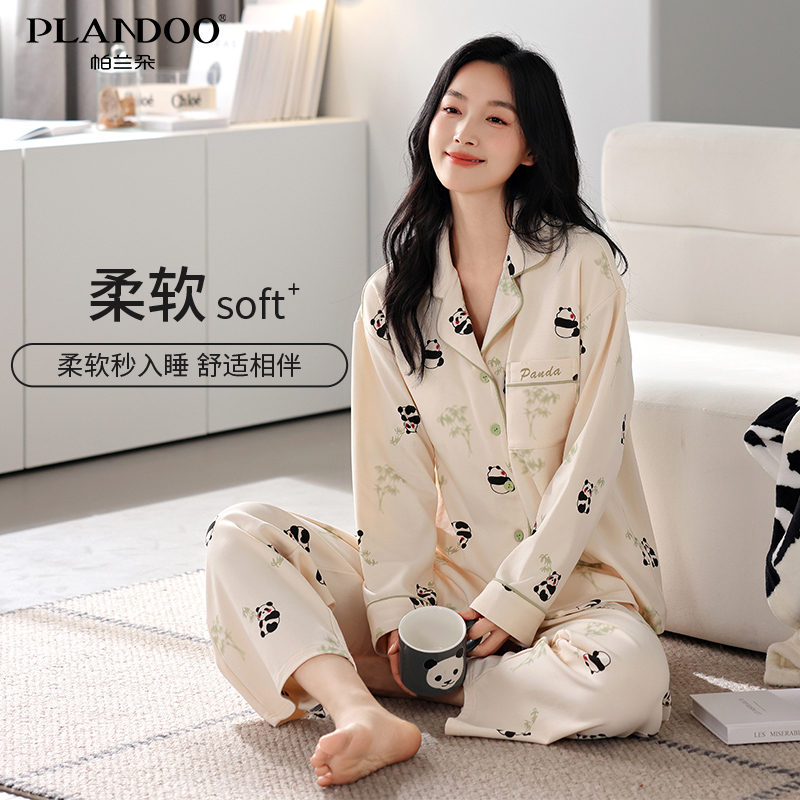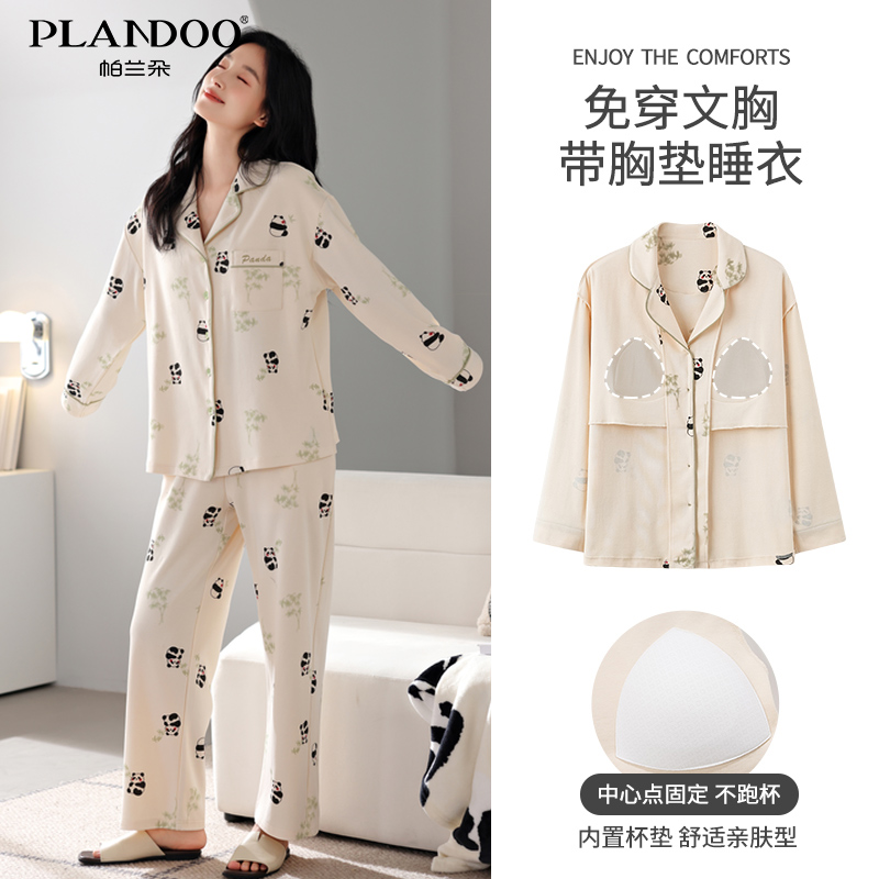自带胸垫可外穿家居服卡通套装 长裤 睡衣女春秋棉质长袖 帕兰朵新款