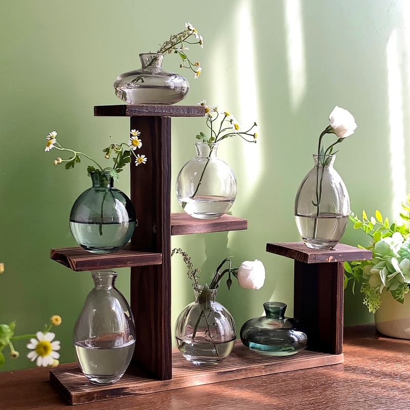水培迷你小花瓶透明玻璃瓶插花器皿复古客厅餐桌摆件办公桌面装 饰