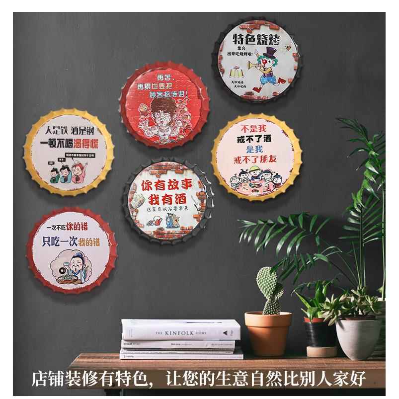 创意酒吧烧烤店铺餐饮墙面装 饰挂件复古背景墙啤酒瓶盖铁皮画壁挂
