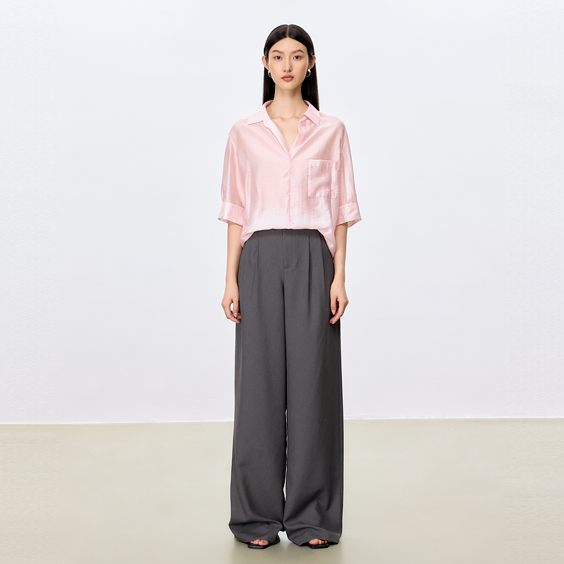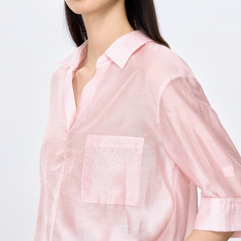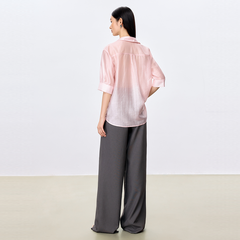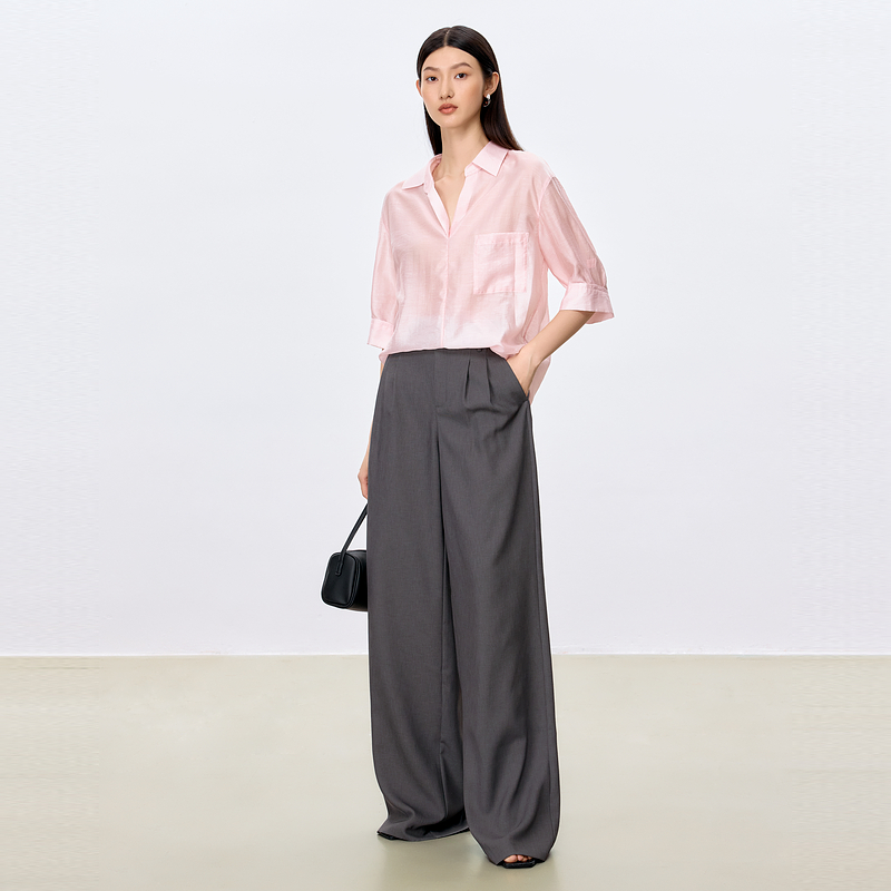 新款 水云间女装 2025夏季 衬衫 通勤翻领宽松莱赛尔柔软亲肤七分袖