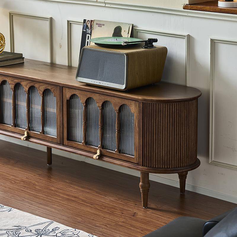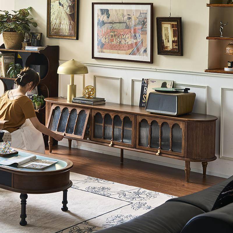 法式 复古实木落地电视柜中古风电视柜茶几客厅家用小户型储物柜