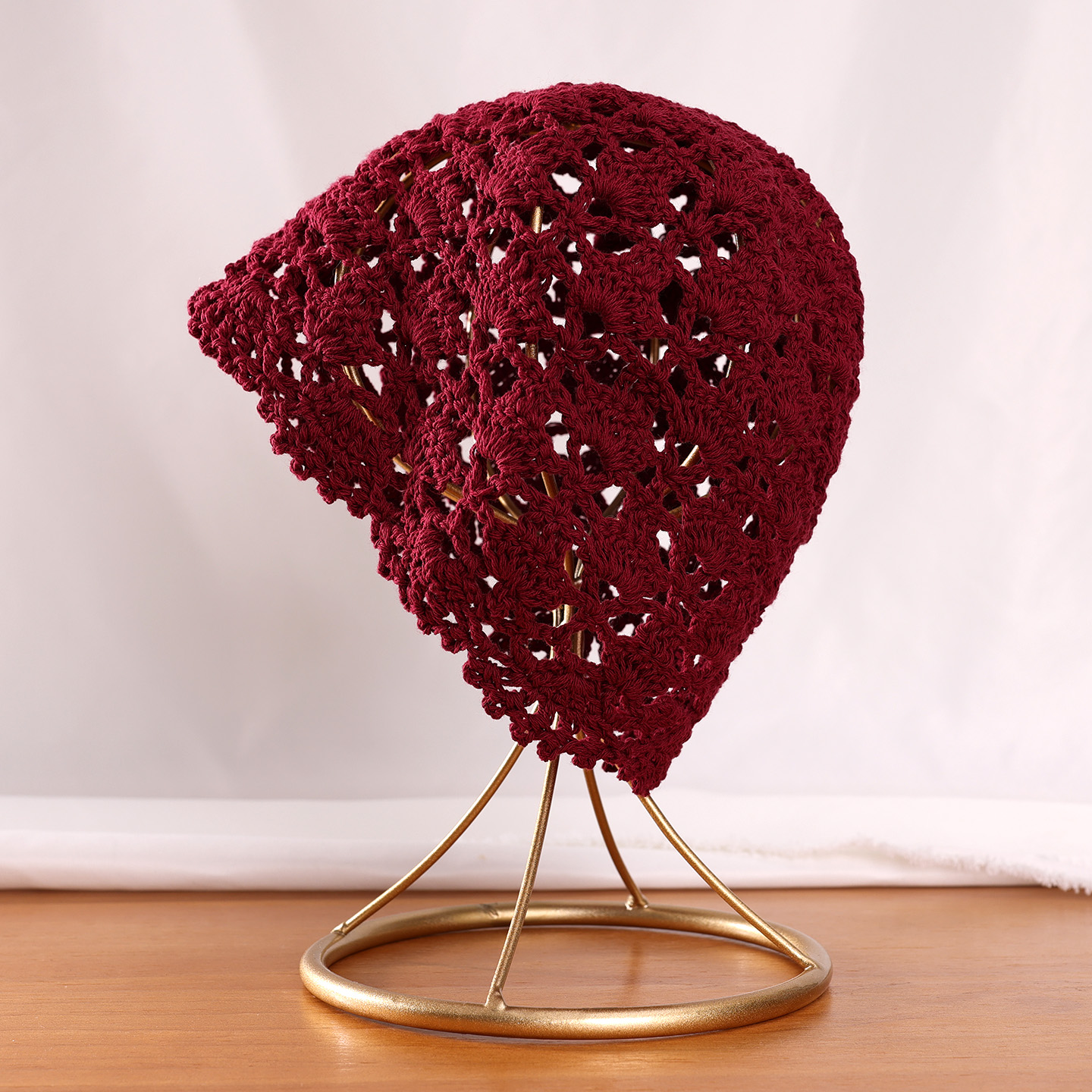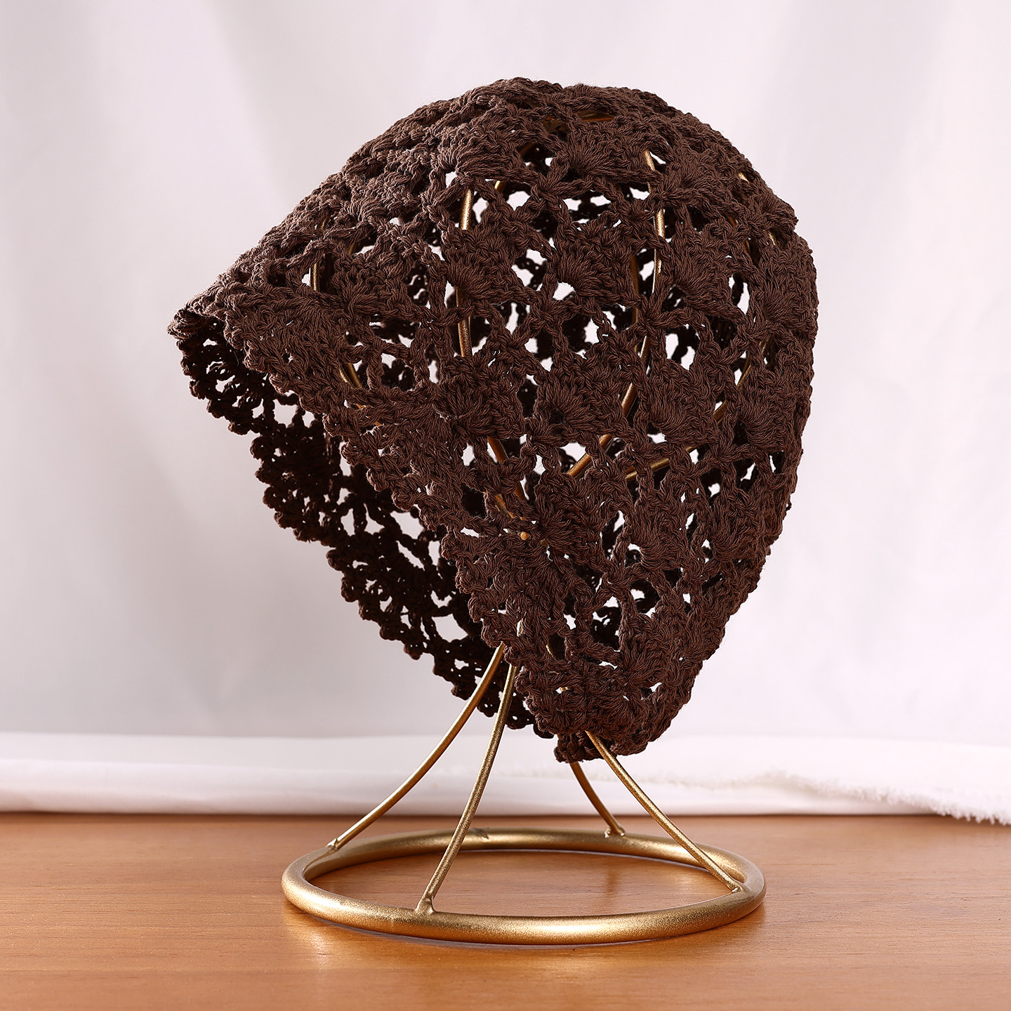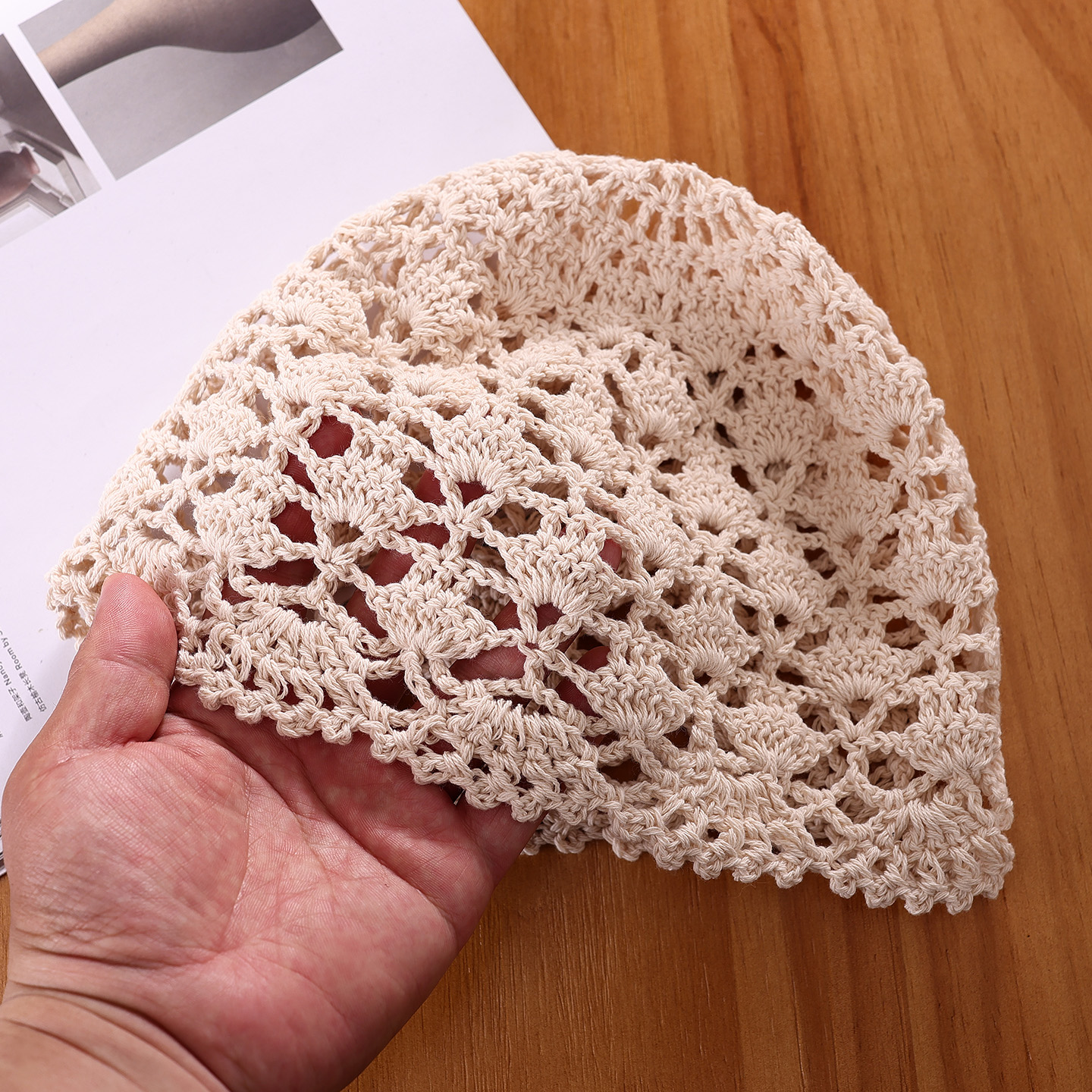 手工编织镂空透气套头帽子女春秋夏天时尚 包头针织帽 蕾丝花边薄款