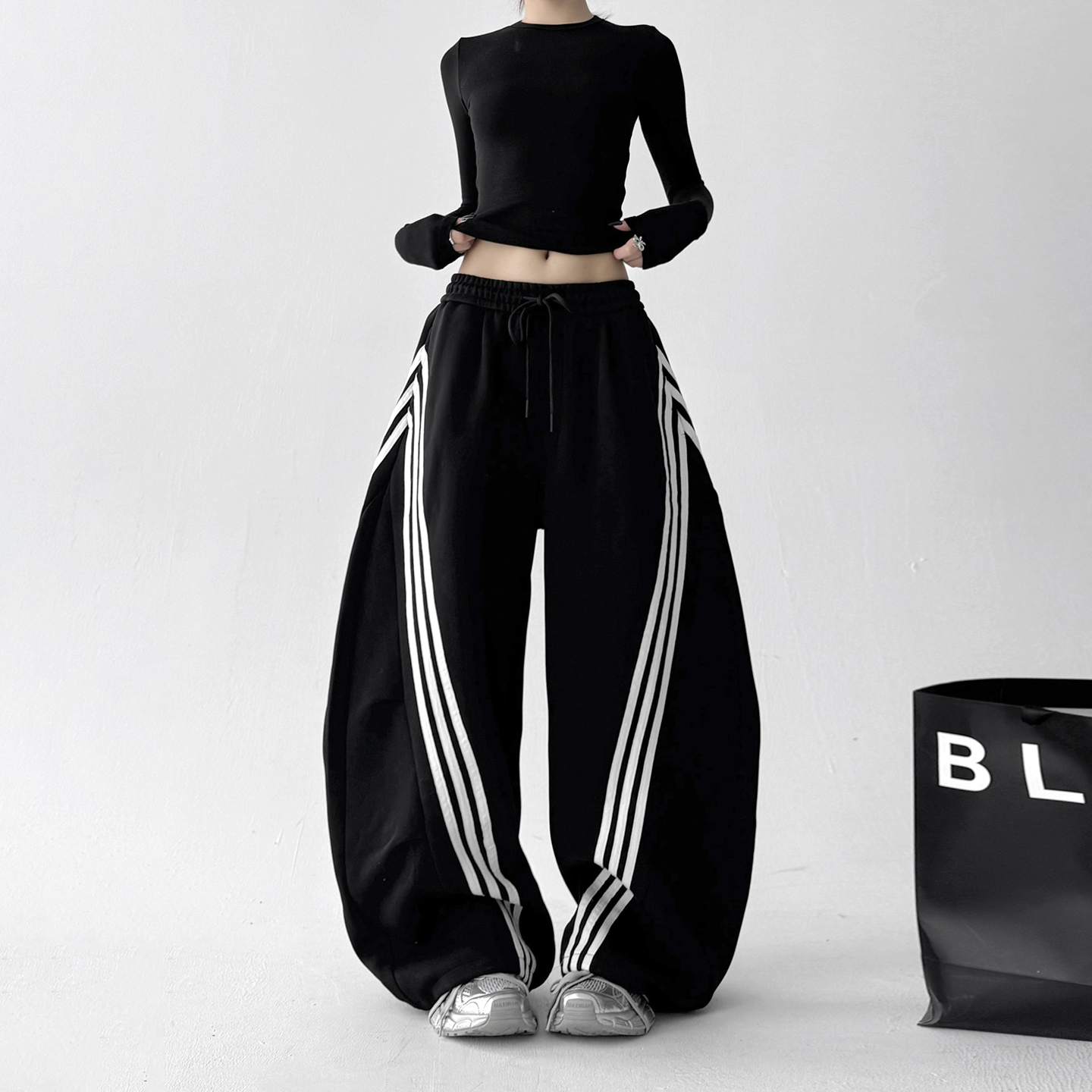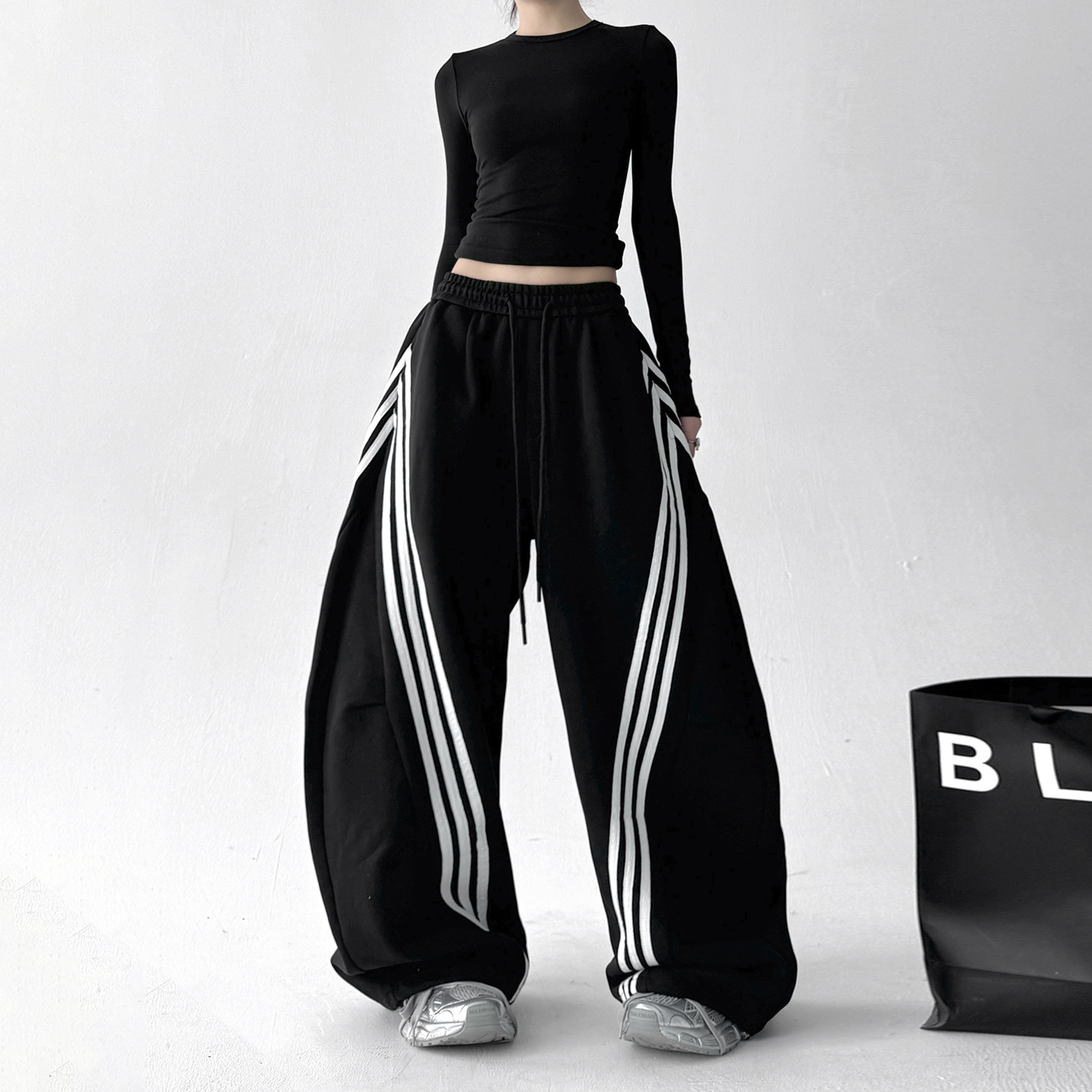 工装 新款 裤 高腰阔腿裤 舞蹈三条杠运动裤 高个子休闲裤 女2025春秋季