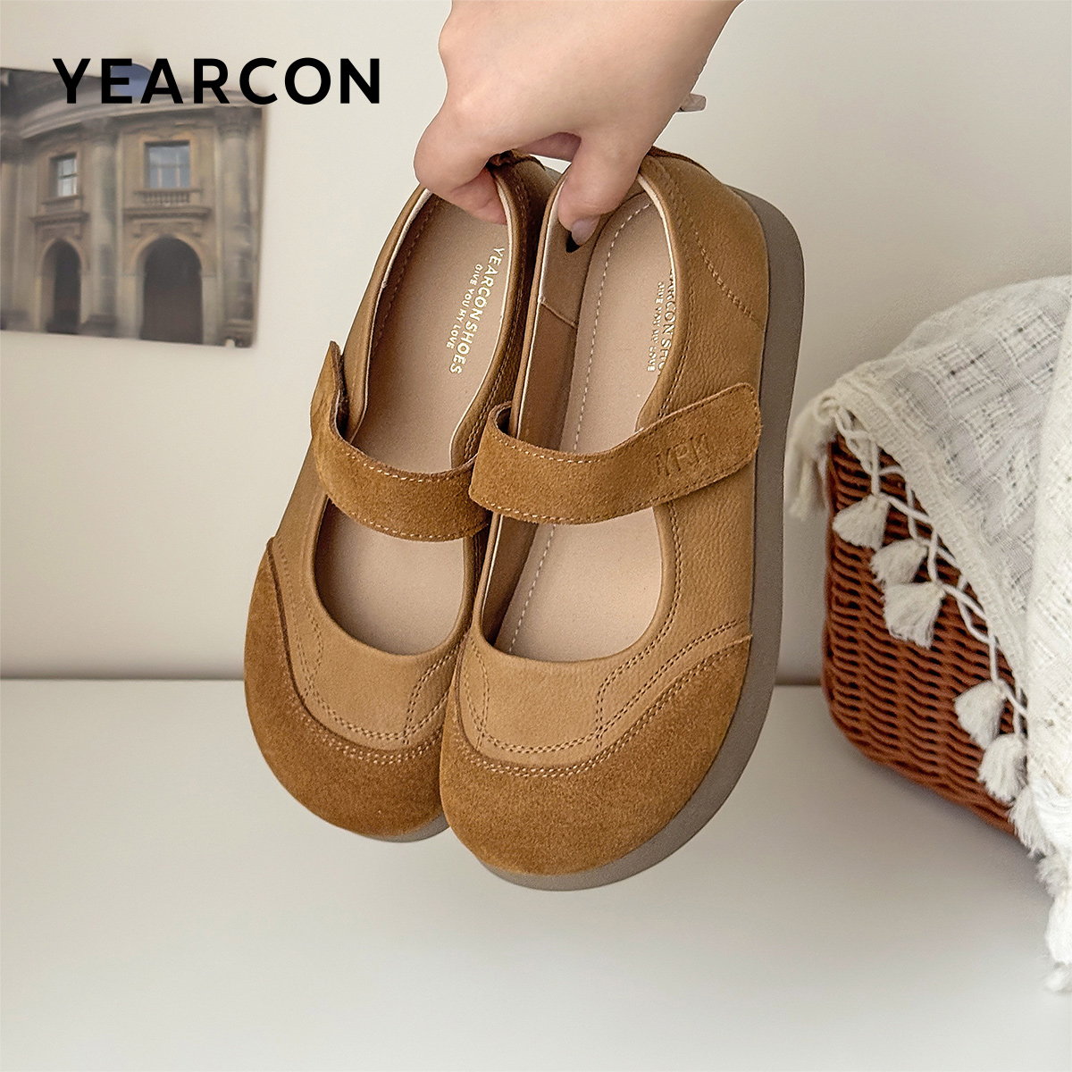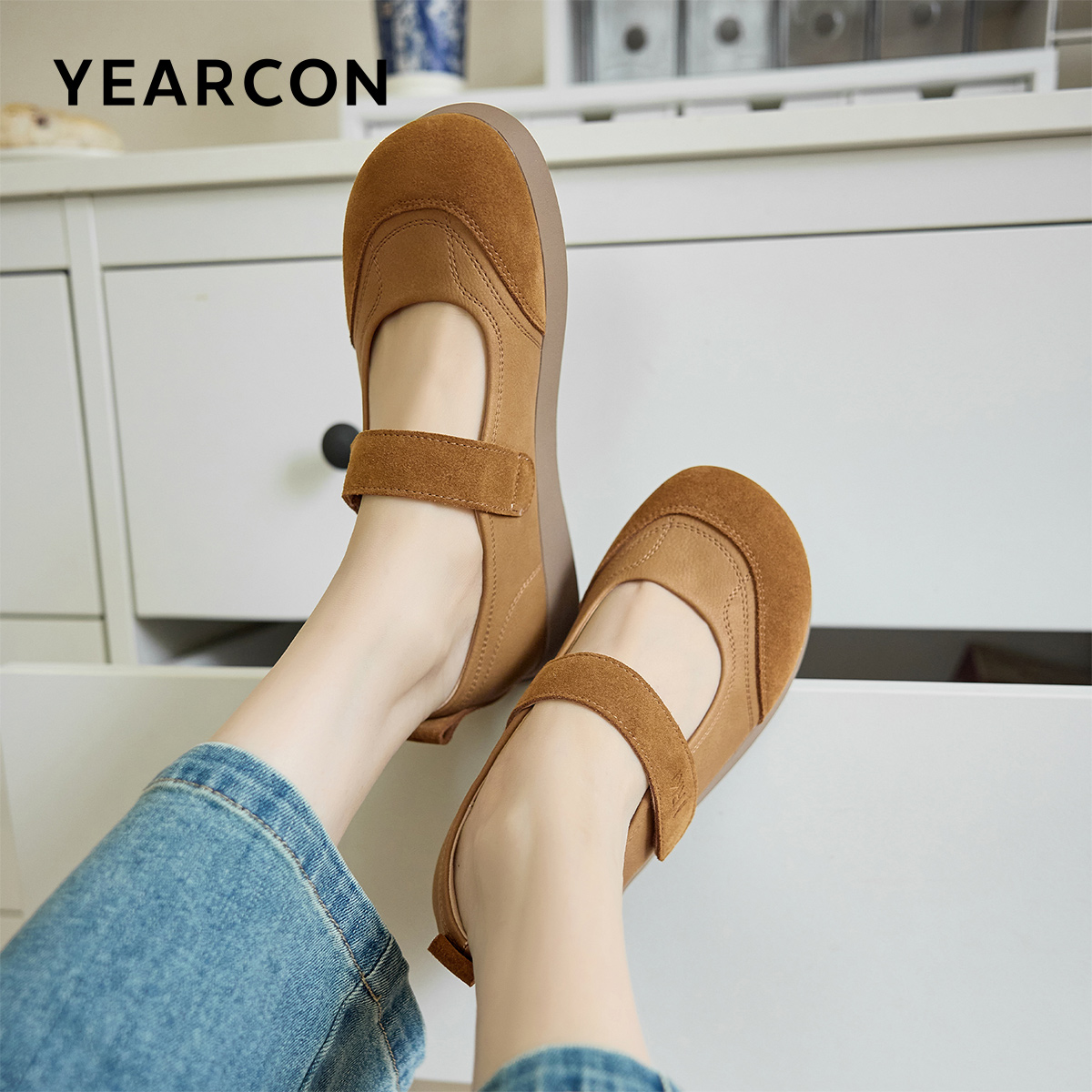 女 羊皮芭蕾玛丽珍单鞋 董洁董璇小酒窝同款 真美诗摩卡慕斯25秋新款