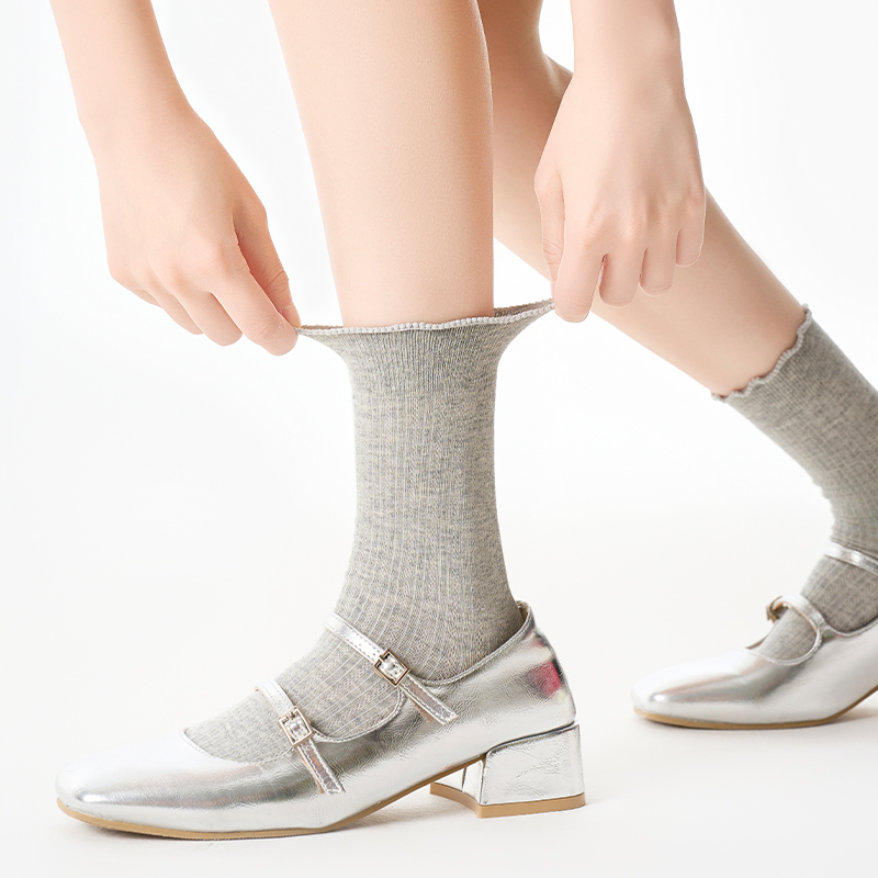 长袜 中筒袜网眼透气花边无骨袜搭配小皮鞋 派米灰色袜子女夏季 薄款