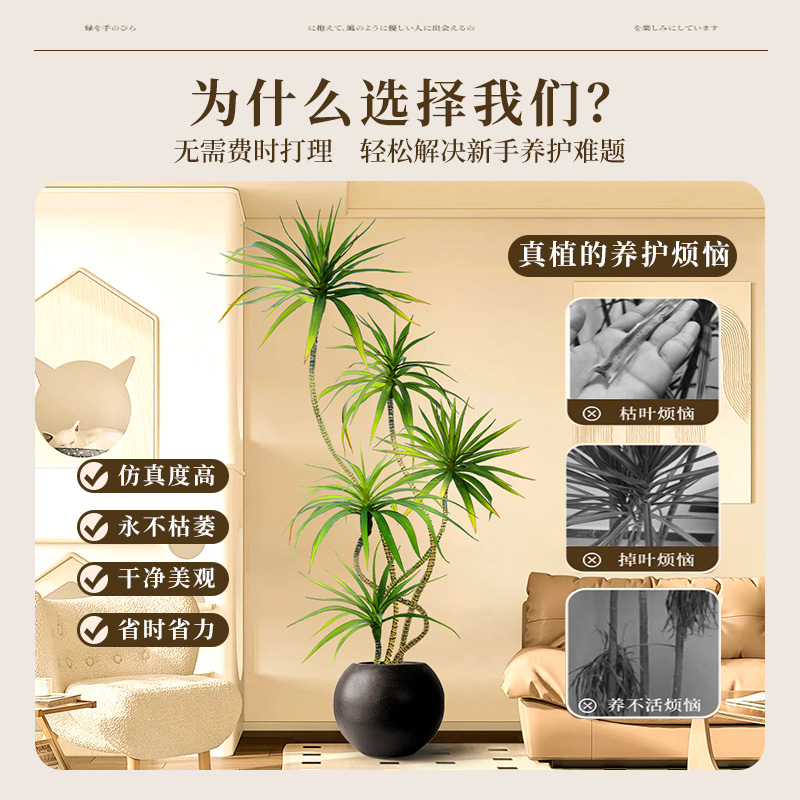 仿真绿植千年铁轻奢感氛围室内高端大型落地假树盆栽植物盆景摆件