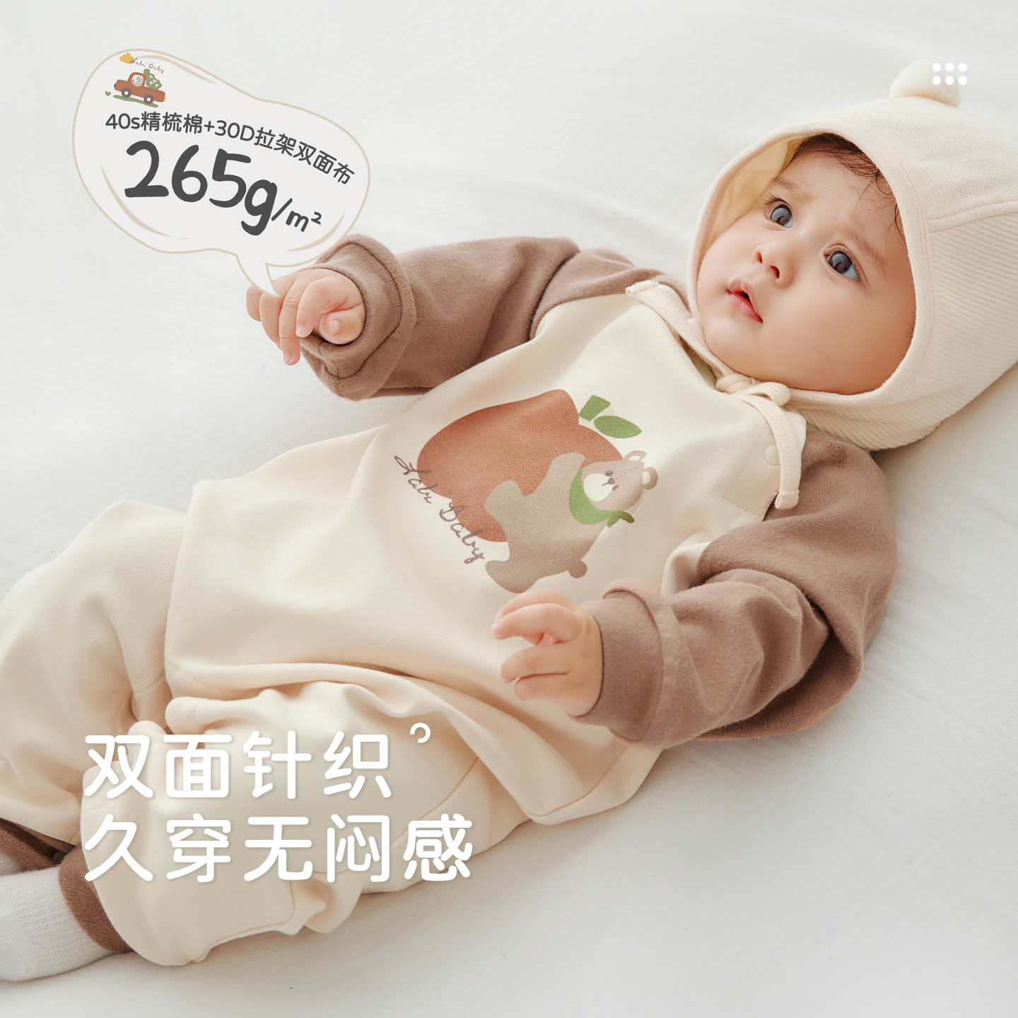 拉比婴儿连体衣长袖 新生儿家居保暖哈衣宝宝偏开爬服 2025秋冬新款