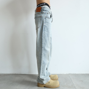 男潮牌直筒宽松垂感阔腿休闲长裤 WAJ 莱赛尔天丝牛仔裤 新款 薄 秋季