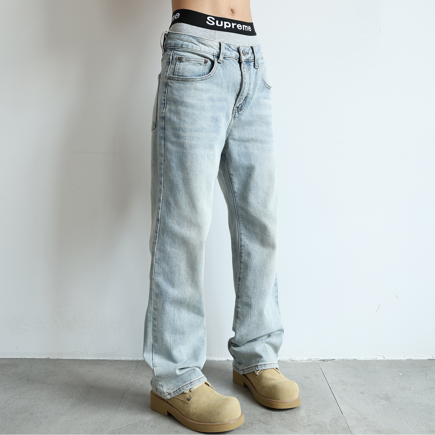 男女秋潮牌休闲裤 江南先生NewJNXS水洗直筒牛仔裤 敖瑞鹏同款