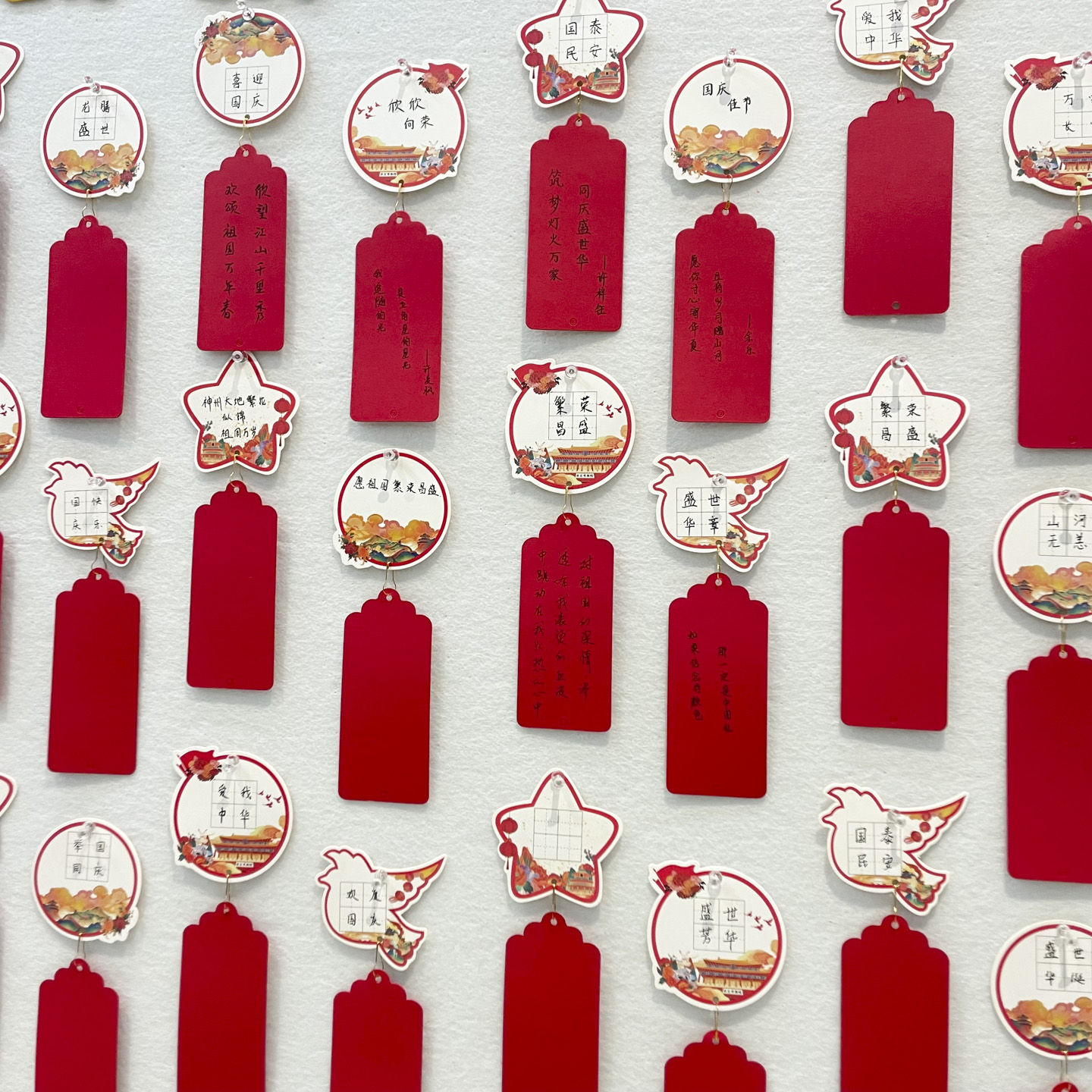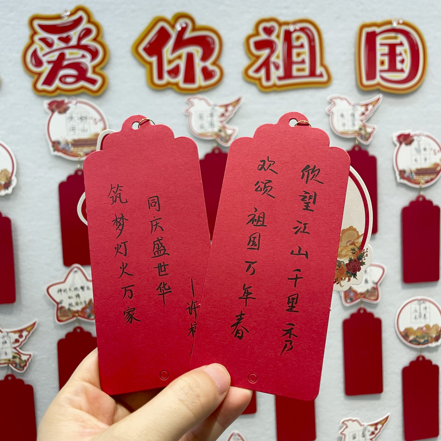 我爱你祖国爱国主题文化墙空白手写国庆DIY祝福祖国贺卡悬挂装 饰吊牌红色祈愿卡片纸幼儿园环创小学生愿望纸