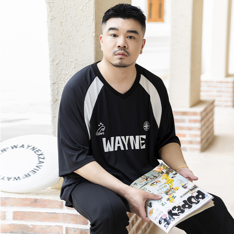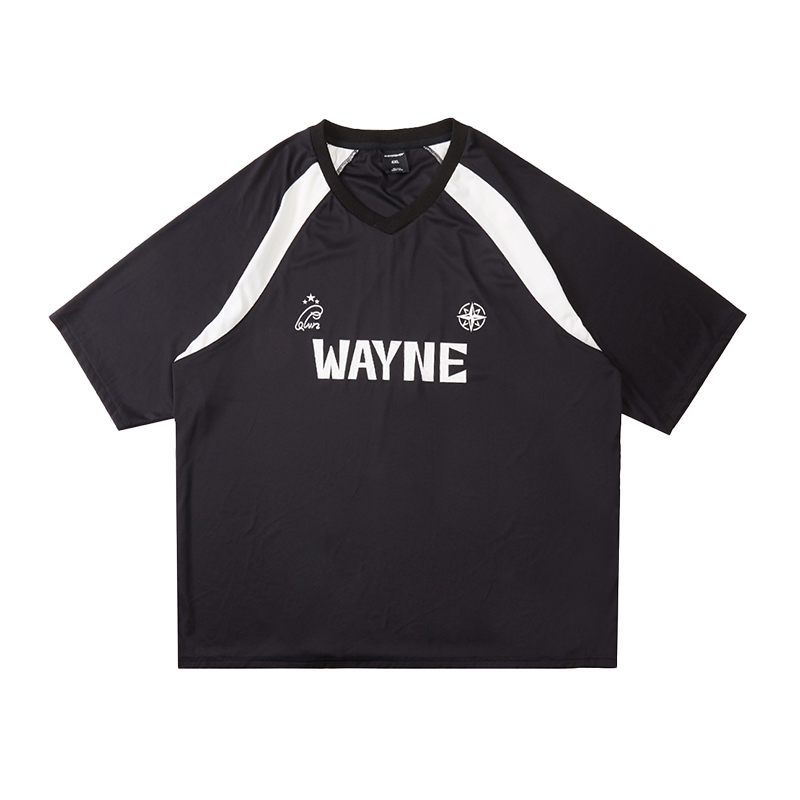 韦恩泽维尔大码 v领做旧印花速干运动8803 机车风t恤男宽松夏插肩袖