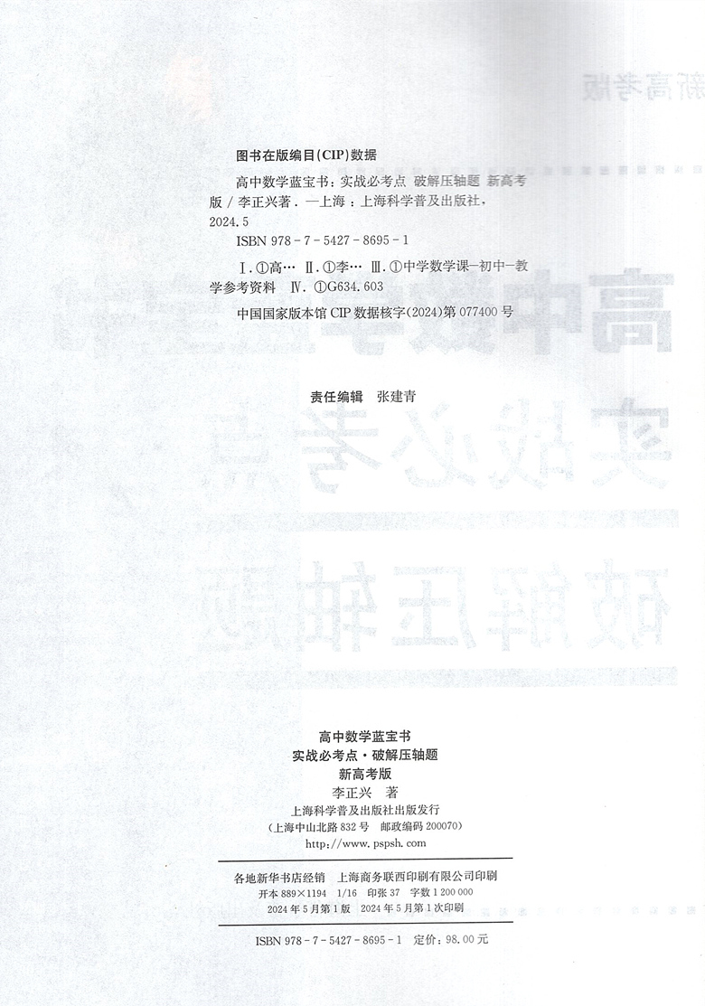 李正兴2024新高考高中数学蓝宝书知识点梳理精讲贯通要点梳理例题精讲巧思妙解高中数学教材考点分析复习辅导书上海科学普及出版 社