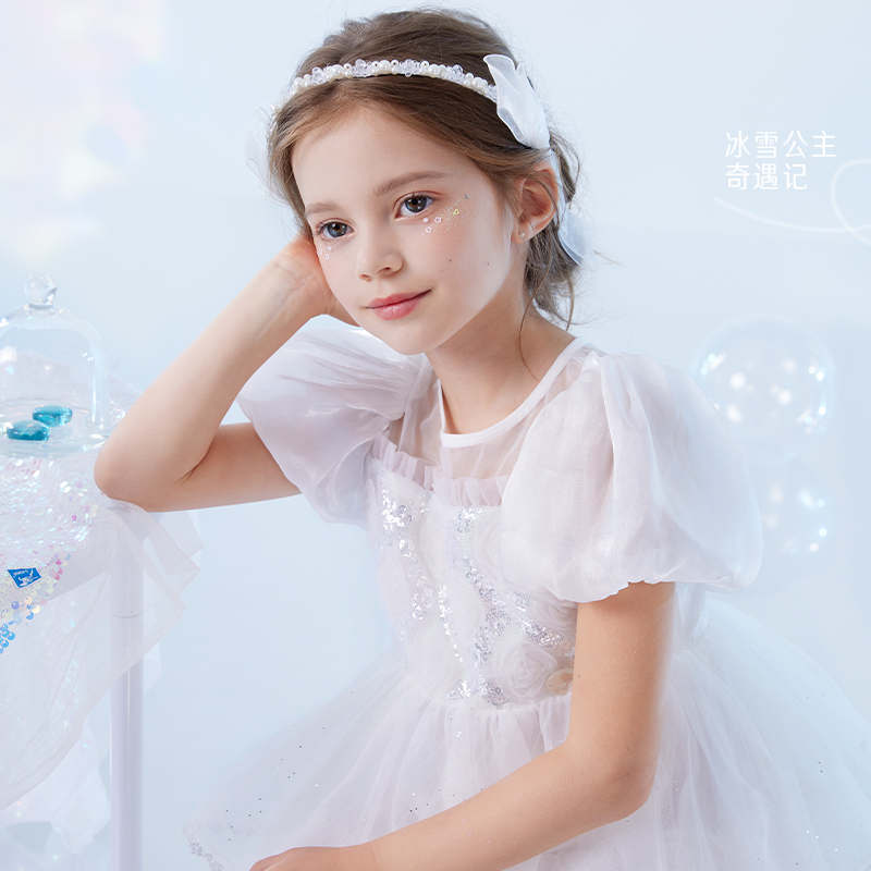 迪士尼女童连衣裙儿童裙子夏装 艾莎公主网纱裙洋气蓬蓬礼服裙 新款