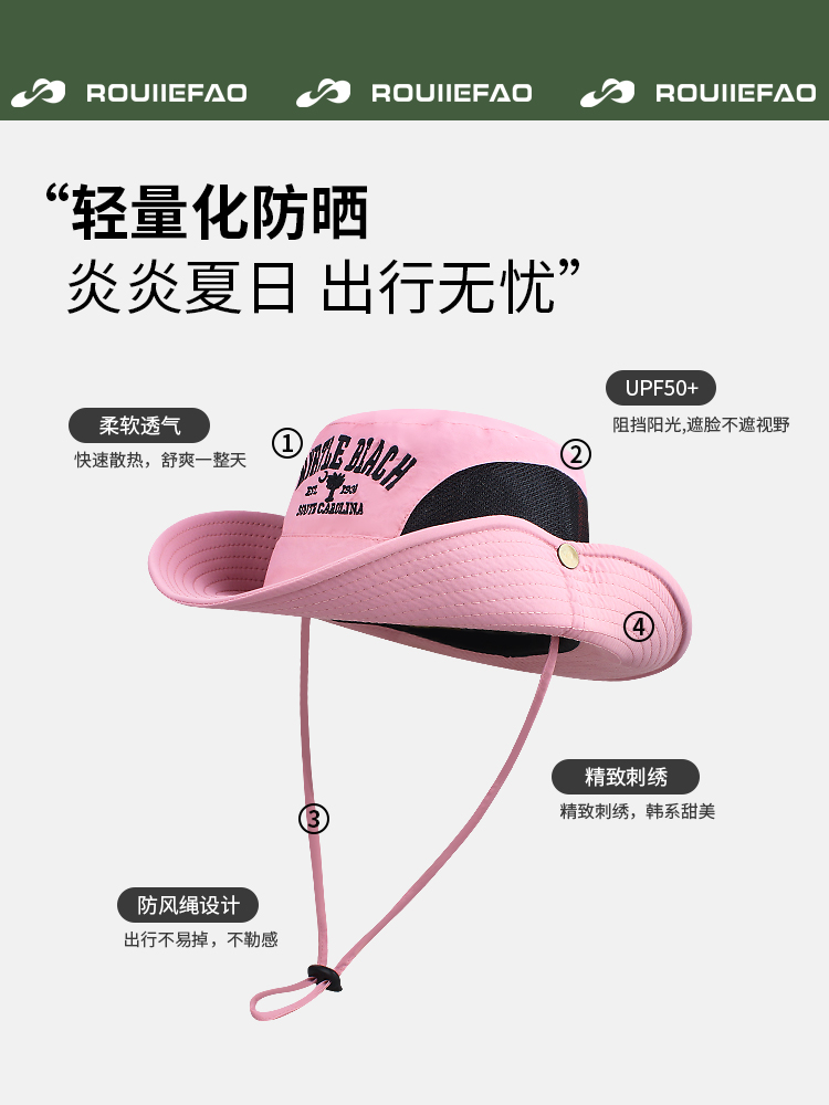 ROUIIEFAO速干西部牛仔帽子女夏季 户外露营登山帽大檐防晒遮阳帽